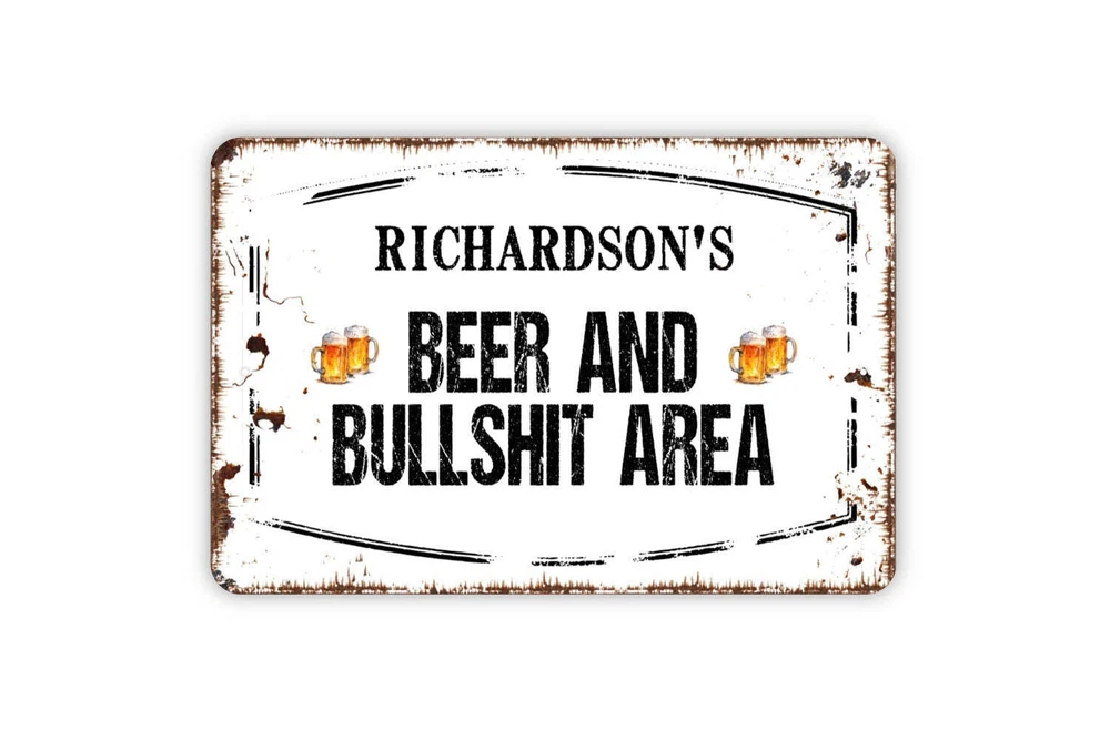 Personalized Beer And Bullshit Area Sign - Custom Man Cave Metal Wall Art