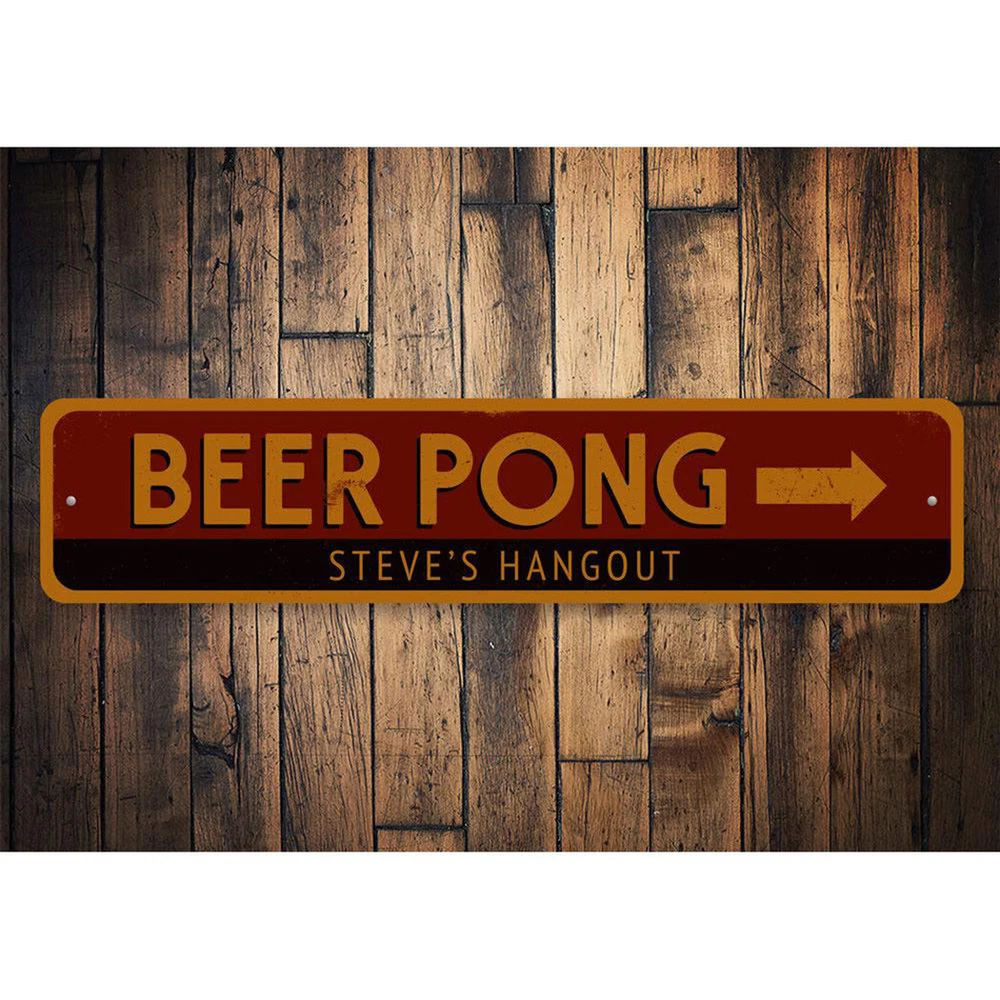 The Lizton Sign Shop Product Description Personalized Beer Pong Arrow Hangout Name Bar Aluminum Metal Decor Sign **there may be slight variations in color and text spacing, however your sign will be very similar to the image above. Quality Aluminum Street Signs Sign Information Aluminum Brand New Sign Comes with rounded corners and pre-drilled for easy hanging. We use the highest quality materials - 100% USA-made! Great Gift Idea - Our signs truly make a one of a kind gift. Personalize the sign with the text you want to add. Custom text for the sign can be sent to us via email. A BRAND NEW SIGN!! All of our street signs are made of premium materials. The sign itself is made of aluminum and will never rust providing years of enjoyment indoors and outdoors. No Cheap plastic!! The Lizton Sign Shop specializes in quality personalized custom aluminum signs for any occasion. These make the perfect sign for any man cave, office, basement, garage, college dorm, kids bedroom, game room, bar, pub, tavern or countless other places. *Colors may vary slightly from one computer screen to the next but the image should be very close. All content and designs are subject to copyright and may not be reproduced in any form. Payment Methods We would prefer payment to be made through paypal but we also accept all major credit cards. If you select the credit card option please contact us after you make your purchase and we can walk you through the steps to make a secure payment. Return Policies We will accept returns within 30 days of the purchase date. The buyer is responsible for any costs to return the item or items. Returns will only be accepted for items that were damaged in shipping or if we made an error in the manufacturing of your item, i.e. spelling error.