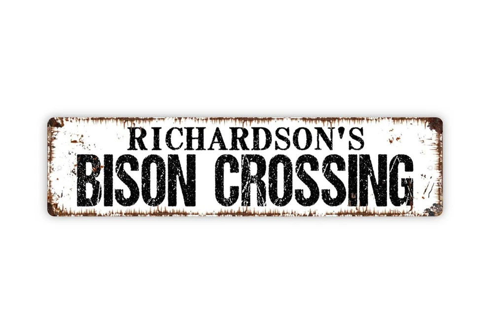 Personalized Bison Crossing Sign, Custom Buffalo Metal Sign, Rustic Street Sign