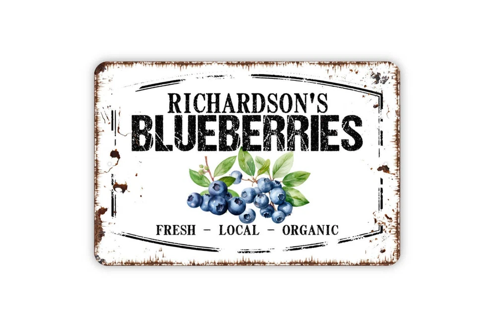 Personalized Blueberries Sign - Custom Your Name Blueberry Farm Garden Metal