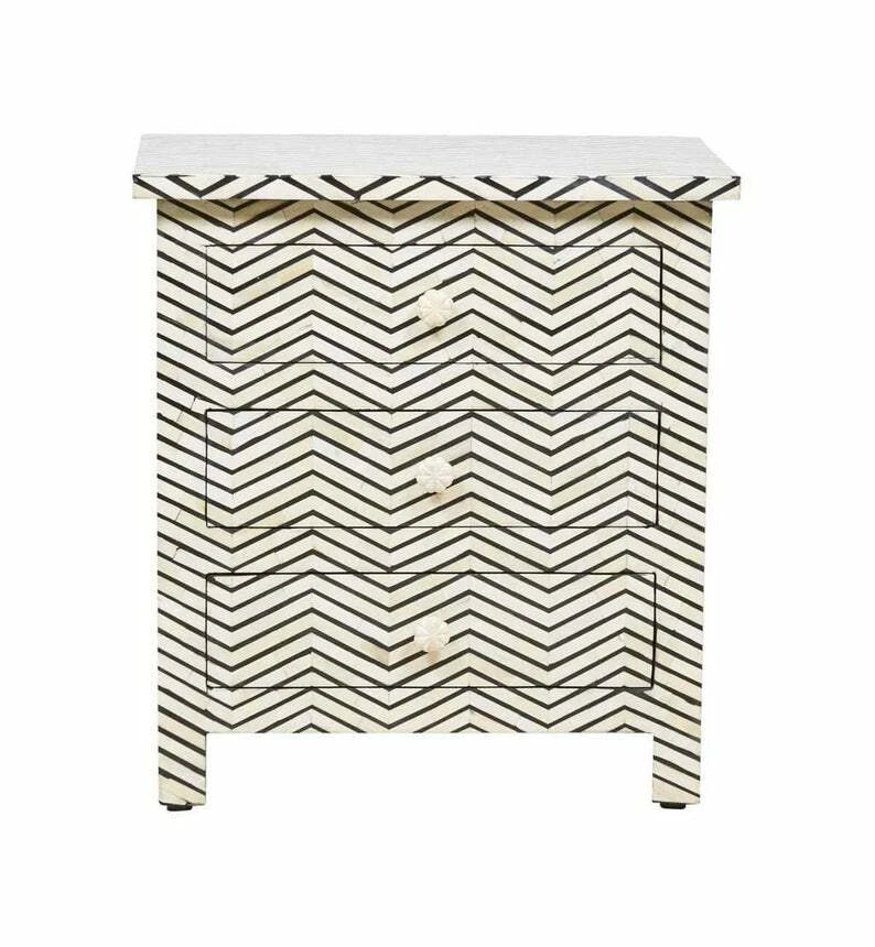 Personalized Bone Inlay Bedside Bedside Cabinet Best Home Decor Furniture Let your sleeping space be a source of delight with this matchless Bone Inlay/ Mother of Pearl Bedside by your side. It is exemplary decent to fit comfortably into any confined space yet gives a luxurious feel to the interiors of your room. Make use of the drawer and cupboard space for all those creature comforts that provides you systematised utility organiser. Join your beautifully designed bedsides without adorably designed Bone Inlay / Mother of Pearl Bedheads and Wardrobe and treat yourself to the opulent luxury of Indian heritage. This piece is hand-made by skilled craftsmen, slight irregularities in the resin and inlay may exist and because of this slight imperfections are to be celebrated and not considered to be flaws. Made to Order. Thus, the customer owns a New Piece every time. This piece is hand-made by skilled craftsmen, slight irregularities in the resin and inlay may exist and because of this slight imperfections are to be celebrated and not considered to be flaws. The packaging of the product is done in a wooden box with proper cushioning to ensure that the product is delivered to you at its best condition. We use professional furniture packaging for delivery of large furniture pieces. Please bear in mind that the photo may slightly differ from actual item in terms of color due to the lighting during photo shooting or the monitor's display. We have made every effort to display, as accurately as possible, the colours of our products that appear at the website. However, as the actual colors you see will depend on your monitor, we cannot guarantee that your monitor’s display of any color will be accurate. The position of pattern/design may slightly different from what you see. If you have any doubt about our products, please contact us before buying the product to avoid any misunderstanding in the future. To preserve your bone inlay investment –be gentle. As an organic material, bone inlay is porous, so it’s important to avoid harsh cleaning chemicals, keep it away from direct heat. An occasional wipe with colourless beeswax will keep the resin supply and prevent cracking. To clean, use a lightly moistened lint-free cloth, and dab rather than rub. We are based in Illinois and every product is specially made and shipped from India. Cleaning Instructions: Use a damp cloth to wipe the stains on the product and let it air dry. Do not wash the product under running water. Conditions of Return: Buyers are responsible for return postage costs. If the item is not returned in its original condition, the buyer is responsible for any loss in value. There may be additional shipping fees for international and domestic orders based on your location and the weight of your package. PLEASE NOTE : The customer is responsible for all fees or custom charges that may be charged by her/his country. We cannot be responsible for any delays caused by the customs. Dispatch Time: 20-25 Business Days Production Time: 3 Weeks Other Information: Issue on color resolution /pattern Please bear in mind that photo may slightly different from actual item in terms of color due to the lighting during photo shooting or the monitor’s display. We have made every effort to display, as accurately as possible, the colors of our products that appear at the website. However, as the actual colors you see will depend on your monitor, we cannot guarantee that your monitor’s display of any color will be accurate. The position of pattern/design may slightly different from what you see. If you have any doubt about our products, please contact us before buying the product to avoid any misunderstanding in the future. Terms and Policies: We use the DHL India services to ship our items globally. We will provide regular updates as we make and ship your item. Normally Shipping takes between 7-15 Business Days from date of dispatch. Make sure that you have provided a valid address and a phone number. For all international packages, please provide a phone number. HpCreations will not be held responsible for any shipping delays, return shipping fees, customs fees/taxes or international delivery times. The Shipment will be destroyed by the Shipping Agency after 7 Days of Arrival at Destination in case the Customer does not respond or receive the Shipment because of the Custom Duties/Taxes or any other reason. We are not responsible under such cases. WE do not accept cancellations on customised order. Custom & Taxes Policy Buyer Will Responsible For Their Respective Country Custom Charges or Other Taxes.