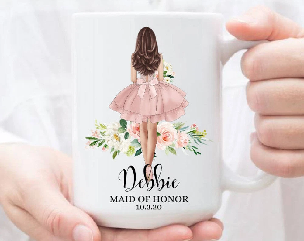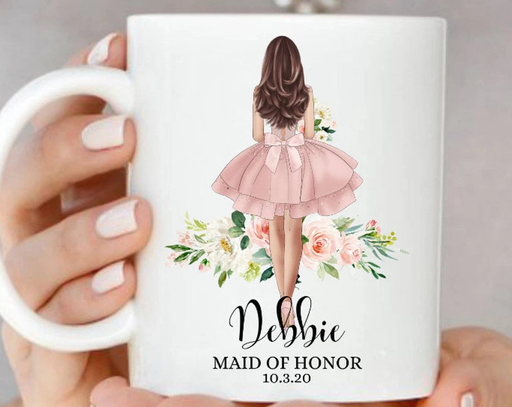 Personalized Bridesmaid Mug Maid Of Honor Proposal Bridesmaid Gift Product Details.. This high quality 11oz. ceramic white mug has a premium hard coat that provides crisp and vibrant color reproduction sure to last for years. Perfect for all hot & cold beverages. The highest quality printing possible is used. It will never fade no matter how many times you wash it. Material: 100% Ceramic. Print both sides. Dishwasher and Microwave Safe. High Gloss + Premium White Finish. Printed in the U.S.A. Personalized & Custom. We support personalized and custom mug to add custom, when placing an order, you can add notes to the "order note" in shipping address section. Also you can contact us directly via message. Shipping Info. Ready to ship in 1 to 2 business days, All products are made-to-order and proudly printed in the United States. Shipped by USPS and DHL, You will receive your order in 5-7 days. Replace & Refund. All products are defective during shipping broken, chipped will be replaced free of charge. You are not satisfied with the product, we will refund 100% money to you. If any other issues arise, please do not hesitate to message, we would be more than happy to assist you.
