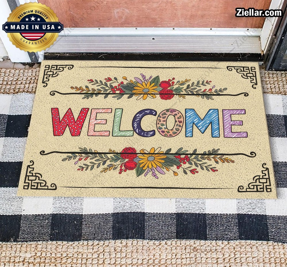 Personalized Bright Flower Doormat, Unique Welcome Mat Elegant Detail