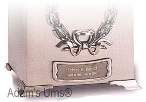 The item you are looking at is our Model Number 002-48, a brushed pewter colored solid brass engraved name-plate medallion for adult size box/cube cremation urns. · Condition: New · Size: Name-Plate Medallion Please note: The third picture shows the medallion on one of our urns to give you an idea of what it would look like. The urn in the picture is NOT included in the listing, but if you would like to purchase the urn as well, we can offer you a package price. · Material: Brass Measurements: Approx. 3.5" Wide by Approx. 1.25" High · Can it be Engraved? : Yes, this name-plate medallion can be engraved, at no extra cost, with two lines of engraving in the font shown. The first line can hold up to 23 characters max. and the second line can hold up to 33 characters max. Unfortunately, at this time, we cannot add clip art or drawings to the engraving. PLEASE NOTE: When purchasing this urn, please email or contact us when making payment to let us know what you would like the engraving to say. In an effort to increase efficiency and to get your items to you as fast as possible, our items generally ship the same or next day, so if you fail to let us know in time what you would like the engraving to read, we will have to ship your item with the engraving blank, and you can then take it to a trophy shop/jeweler/engraver/Things Remembered type of store to complete the engraving. · Other Options Available? : Yes, please look at our store or contact us to see the matching name-plate medallion for 6”/7” and adult size conical urns. Sizing Guide This name-plate medallion is for an adult size box/cube shaped urn or other flat surface. This plate will not fit well on a child/infant or adult size conical type urn. For info on purchasing name-plates for those types of urns, please email us or check our store for more offerings. Details PLEASE NOTE: The third picture above show the name-plate attached to one of our urns to give you a better idea of what they might look like attached. Please note the urn in the picture is NOT included in this listing. If you wish to purchase the urn and name-plate together, we are happy to offer a package price. Please inquire by email before purchasing. These name-plates look good on any adult size box/cube urn, but, of course, we always encourage you to use it on one of our own urns. If you purchase the name-plate together with an urn of ours, we can give you a discounted price on the name-plate. Please email for more info. The name-plate can be directly attached to the urn with the double-sided tape on the back of the plate. Measurements: Approx. 3.5" Wide by Approx. 1.25" High Engraving Information The plate can be engraved with two lines of engraving in the font shown, with up to 23 characters max. in the first line, and up to 33 characters max. in the second line. Bear in mind, the second line will be smaller in font size than the first line, and we will automatically center the text accordingly. Most people usually choose the name for the first line and dates for the second line, but some suggestions for the second line include: Rest In Peace Gone Too Soon Forever In Our Heart In The Arms Of The Angels We Will Always Remember You When making payment, please include what you would like the plate to be engraved with in the "Note to Seller" section, or by emailing us. Please Note: If you choose dates for the second line, we will automatically abbreviate any longer month’s names, like December (Dec.), unless you specifically ask us to do otherwise. We do this in order to best fit the wording and to best center the text from the first line above the second line. Shipping Policies Expedited Shipping: If you are having a memorial or service, and wish to have your item expedited in order to ensure it will be there in time, please contact us for expedited shipping rates. Alaska/Hawaii/US Territories: If you are looking to ship to Alaska, Hawaii, Puerto Rico, other U.S. Territories, we CAN accommodate that for you, but please contact us for a shipping quote BEFORE purchasing. International Shipping: For Shipping Outside The Continental USA: If you wish to ship this item to Hawaii or Alaska, we can accommodate that, but please inquire about rates BEFORE purchasing the item. If shipping internationally, please be advised that customs policies may delay the receipt of your purchase. We ship your purchase the next business day after you order it, or sooner when possible, but we have no control regarding how long it takes your package to clear through customs. We are always happy to provide proof of how we shipped your package and send you a tracking number, when applicable. If shipping this item internationally, please provide us with your phone number for customs purposes, as this will help speed up delivery of your item. If you have any questions, please contact us. Return Policy Please be advised, unless there is a defect found in the product, all returns will be subject to a 20% restocking fee, as well as original shipping costs. All returns will be paid in the form of a merchandise credit with our store. Please contact us BEFORE returning an item, and before leaving feedback. PLEASE NOTE: Items that have been engraved and/or personalized can NOT be returned. About Us We are so sorry for your loss, but honored and humbled you are considering us to be a part of your service. At Peace Memorials is dedicated to providing you with the perfect urn or memorial for your loved one. We welcome any questions, thoughts, and feedback you may have about our products. Thank you for your business, we look forward to serving you. ▪ Full-Sized Urns ▪ Keepsake Urns ▪ Cremation Jewelry ▪ Scattering Tubes ▪ Memorial Plaques ▪ Urn Vaults ▪ Register and Sign in Books ▪ Grief and Therapy Books ▪ Funeral Accessories & Hand-Outs And much more!