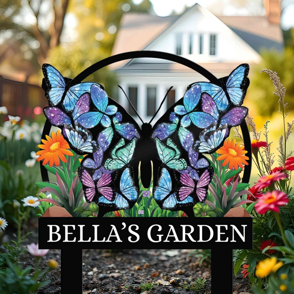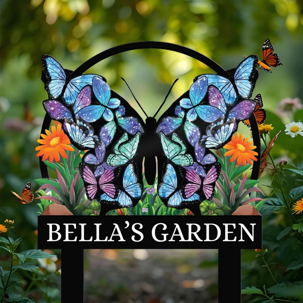 Personalized Butterfly Garden Metal Sign With Stakes, Custom Garden Flower Sign