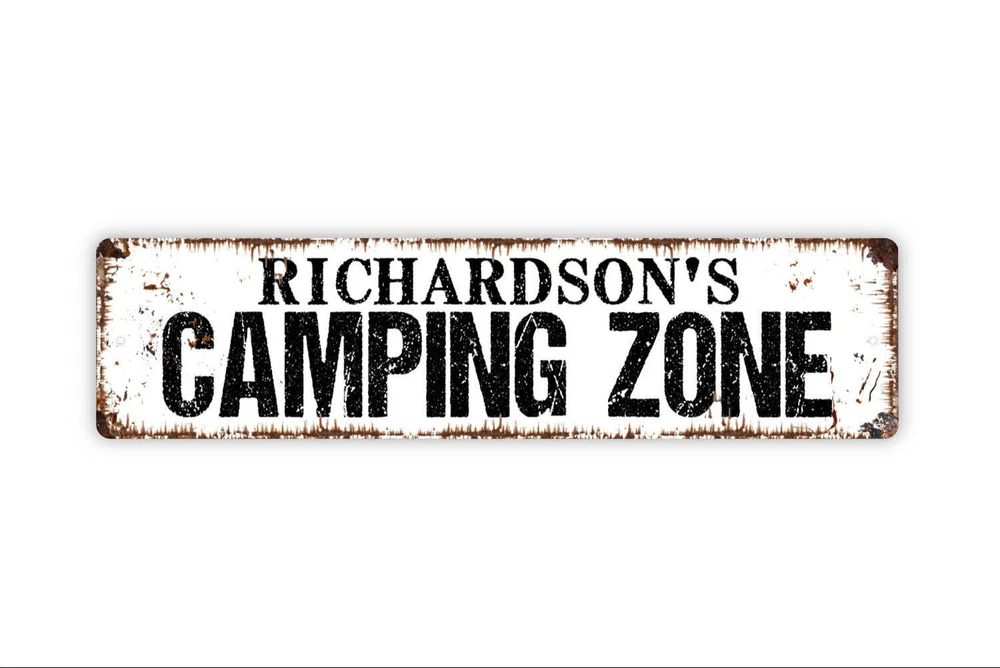 Personalized Camping Zone Sign, Custom Metal Sign, Rustic Street Sign or Door