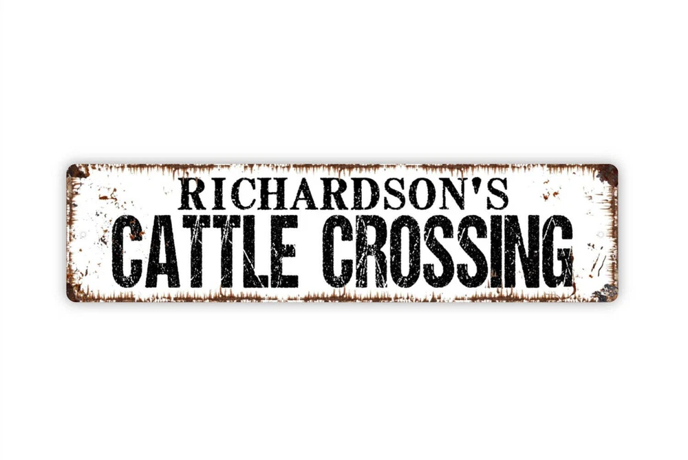 Personalized Cattle Crossing Sign, Custom Metal Sign, Rustic Street Sign or