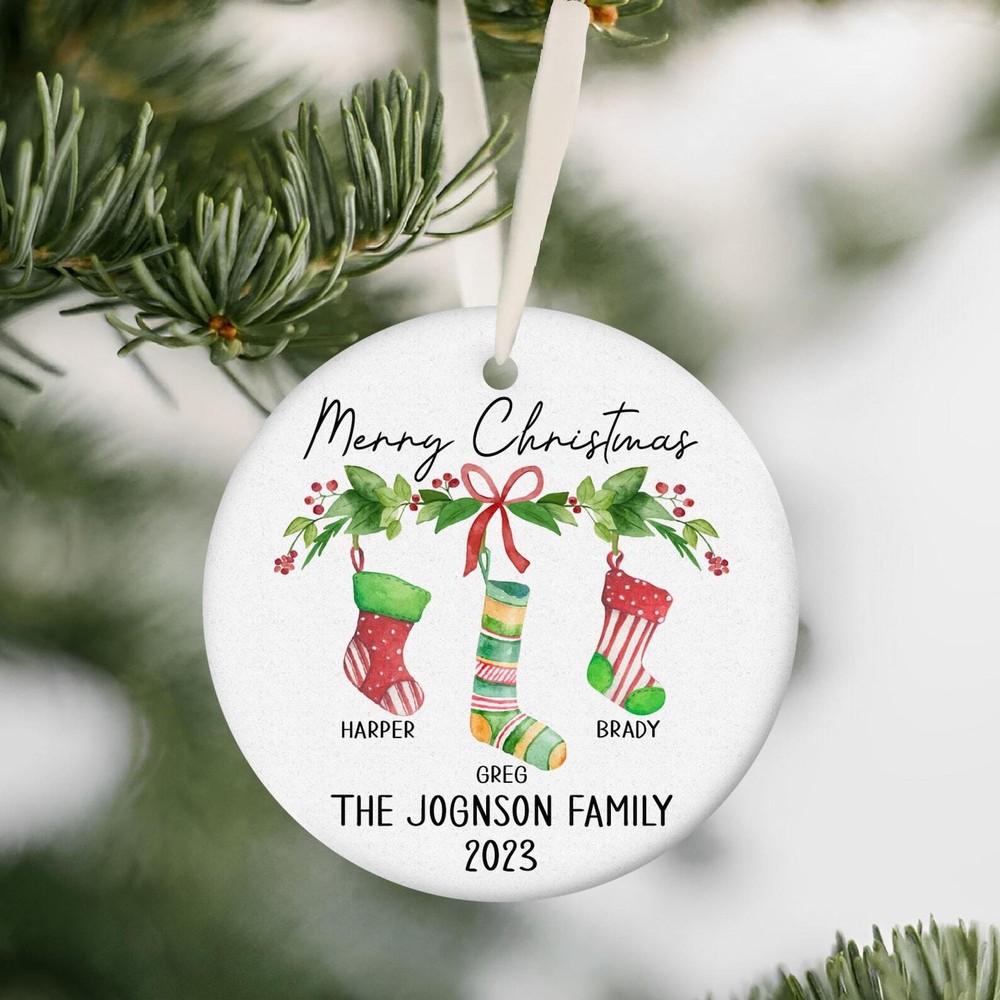 Family Christmas Keepsake Family Christmas Gift Christmas Ceramic Ornament Personalized Family Christmas Ornament 2023 Ornament Material: Ceramic Color: White Shapes: Circle, star, heart and oval Can be printed on both sides Imprint full-color artwork, photos, or logos Hole for hanging string and hanging string included Printed in the USA