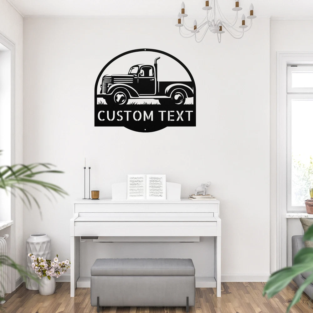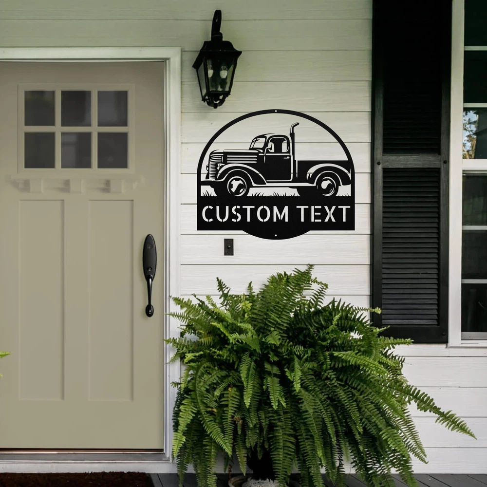 Product Description Personalized Country Truck Metal Sign Custom Rustic Decor Unique Gift for Him Add a touch of rustic charm to your space with the Personalized Country Truck Metal Sign ! This sign is perfect for anyone who loves the country lifestyle or classic trucks. Crafted from 16 gauge high-quality metal , this sign is designed to stand the test of time. With a powder coating , it is dust, weather, and water-resistant, making it suitable for both indoor and outdoor use. Key features include: Customizable Design: Personalize it with names or a special message. Durable Construction: Made from high-quality metal for long-lasting enjoyment. Perfect Gift: Great for Christmas, birthdays, or any special occasion. Charming Decor: Ideal for home, garage, or office decoration. The Personalized Country Truck Metal Sign is more than just a sign; it’s a heartfelt gift that captures the essence of country living. Celebrate the memories and the love for classic trucks with this beautiful piece of decor! Service and Color Choice Our metal signs are designed to be personalized just for you, making them the perfect addition to any space! The default color for our signs is Black , but we also offer a variety of beautiful options including Copper, Gold, White, and Silver . After placing your order, simply contact us with your preferred color choice, and we'll ensure your sign is exactly how you envision it. Let’s create something special together!
