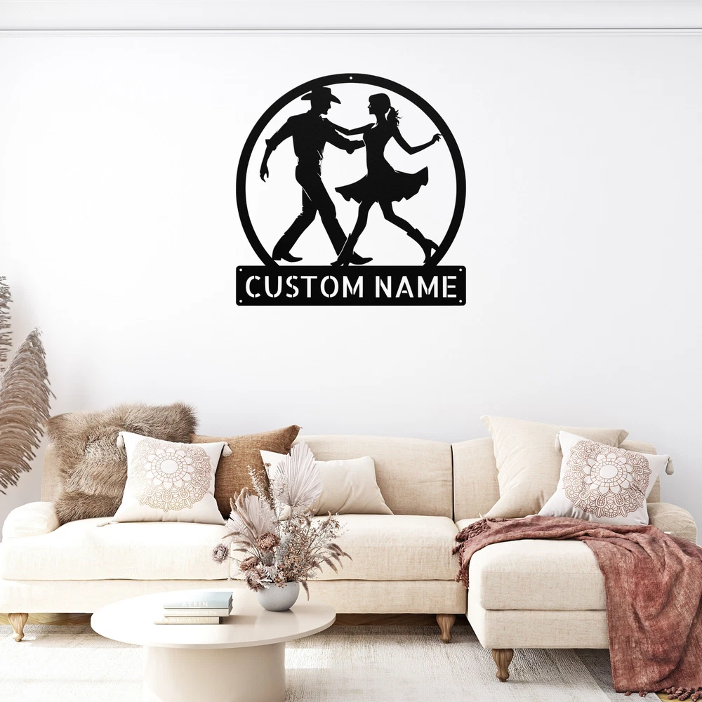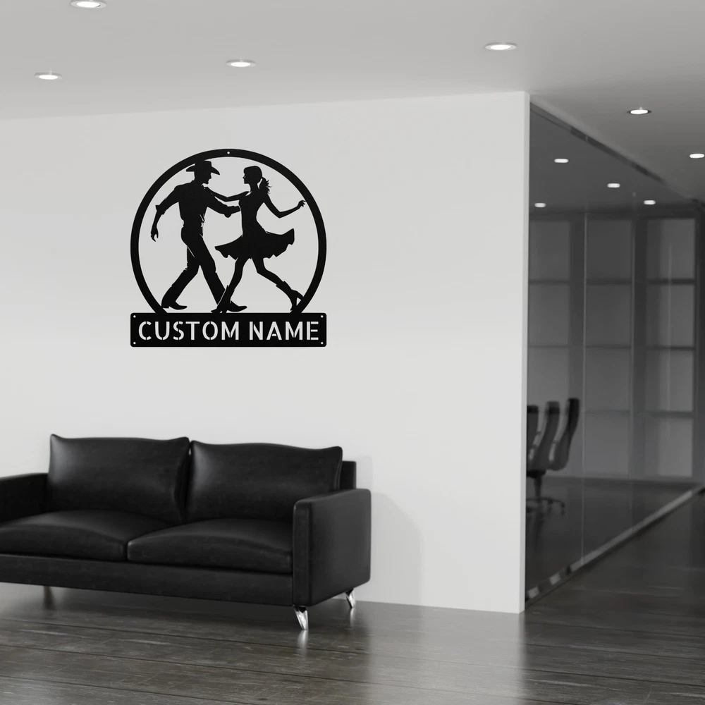 Product Description Personalized Couple Line Dancing Metal Sign Custom Country Dance Wall Art Gift Get ready to kick up your heels with this Personalized Couple Line Dancing Metal Sign ! Made from high-quality 16 gauge metal, this custom country dance wall art is perfect for anyone who loves to dance. Its durable powder coating makes it resistant to dust, weather, and water, making it suitable for both indoor and outdoor use. This personalized sign is a fantastic gift for Christmas, birthdays, or any special occasion. Whether you’re celebrating a love for dancing or looking to add a fun touch to your home or office, this piece is sure to bring joy and personality to any space. Key Features: Customizable Design : Personalize with names or initials for a special touch. High-Quality Material : Crafted from sturdy 16 gauge metal for lasting durability. Weather Resistant : Powder-coated finish protects against dust and moisture. Versatile Decor : Perfect for both indoor and outdoor display. Great Gift Idea : Ideal for dance lovers, couples, or as a unique home decor piece. Celebrate your passion for dancing with this eye-catching metal sign. It’s more than just decor; it’s a tribute to the joy of moving together. Order yours today! Service and Color Choice Our metal signs are designed to be personalized just for you, making them the perfect addition to any space! The default color for our signs is Black , but we also offer a variety of beautiful options including Copper, Gold, White, and Silver . After placing your order, simply contact us with your preferred color choice, and we'll ensure your sign is exactly how you envision it. Let’s create something special together!