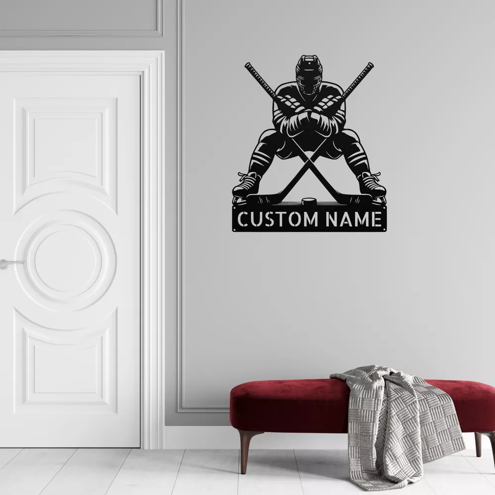 Product Description Personalized Crossed Hockey Metal Sign Custom Hockey Decor Gift for Sports Fans Show off your love for hockey with our Personalized Crossed Hockey Metal Sign ! This sign is a perfect addition to any home, office, or sports room, making it a must-have for hockey fans of all ages. Crafted from 16 gauge high-quality metal , this sign is designed to last. The powder coating makes it dust, weather, and water-resistant , ensuring it looks great indoors or outdoors. Key features include: Customizable Design: Add your name or favorite team to make it truly yours. Durable and Long-Lasting: Built to withstand the elements while maintaining its vibrant look. Perfect Gift Idea: An excellent choice for Christmas, birthdays, or any special occasion for hockey lovers. Stylish Decor: A fantastic way to enhance your game room, man cave, or office with a sporty touch. Celebrate your passion for hockey with the Personalized Crossed Hockey Metal Sign . It’s more than just a sign; it’s a statement of your love for the game! Service and Color Choice Our metal signs are designed to be personalized just for you, making them the perfect addition to any space! The default color for our signs is Black , but we also offer a variety of beautiful options including Copper, Gold, White, and Silver . After placing your order, simply contact us with your preferred color choice, and we'll ensure your sign is exactly how you envision it. Let’s create something special together!