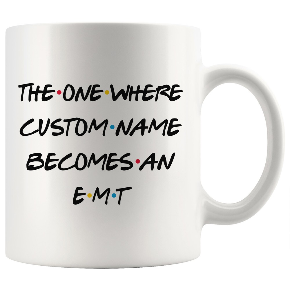 personalized emergency medical technician coffee mug, gift for a EMT, EMT graduation gift, EMT job promotion, EMT coffee cup, gifts for men & women, best EMT mug, mothers day gift, fathers day gift, EMT career job appreciation gift, gifts for her, gifts for him This is the perfect coffee mug with content " THE ONE WHERE 'CUSTOM NAME' BECOMES AN EMT ". CUSTOM NAME Please put the custom name in the notes at the checkout or send us a message. By not doing this, it will delay your order. Example: Custom name: Lynda. A PERFECT GIFT FOR AN EMERGENCY MEDICAL TECHNICIAN ! This special coffee cup can be a great gift for the best Emergency Medical Technician. Bring a smile to your family member or friend with this unique gift . DISHWASHER AND MICROWAVE SAFE! This version of ceramic mug shows it's true colors with quality assurance to withstand heat in the microwave and put it in the dishwasher as many times as you like, the quality will not be Altered. THE MUG DESIGN IS PRINTED ON BOTH SIDES! No matter if you hold your teacup in your right or left hand, you and everyone else will be able to see this unique design. Looking at this cute coffee mug will put a smile on everyone's face! We want you to be 100% satisfied, so please let us know if there is anything wrong with your order so we can fix it right away.