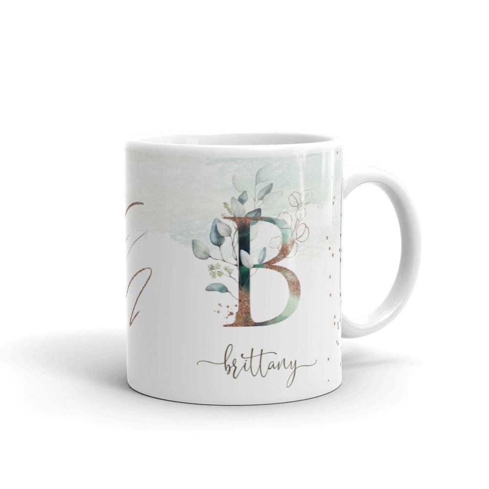 $ 10.0Eucalyptus Monogram Letter Mug Initial Alphabet Cup Birthday & Appreciation