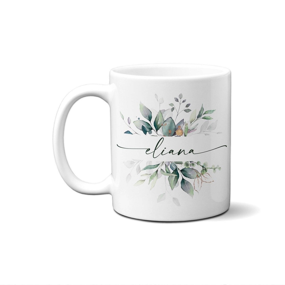 Personalize Name Mug With Watercolor Flowers Custom Floral Coffee Cup With Fresh Greenery Gift For Her Sister Mom Friend Girlfriend Product Details.. This high quality 11oz. ceramic white mug has a premium hard coat that provides crisp and vibrant color reproduction sure to last for years. Perfect for all hot & cold beverages. The highest quality printing possible is used. It will never fade no matter how many times you wash it. Material: 100% Ceramic. Print both sides. Dishwasher and Microwave Safe. High Gloss + Premium White Finish. Printed in the U.S.A. Personalized & Custom. We support personalized and custom mug to add custom, when placing an order, you can add notes to the "order note" in shipping address section. Also you can contact us directly via message. Shipping Info. Ready to ship in 1 to 2 business days, All products are made-to-order and proudly printed in the United States. Shipped by USPS and DHL, You will receive your order in 5-7 days. Replace & Refund. All products are defective during shipping broken, chipped will be replaced free of charge. You are not satisfied with the product, we will refund 100% money to you. If any other issues arise, please do not hesitate to message, we would be more than happy to assist you.