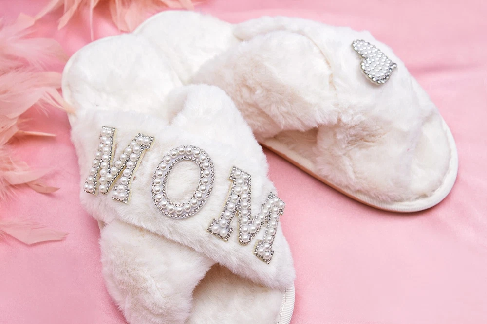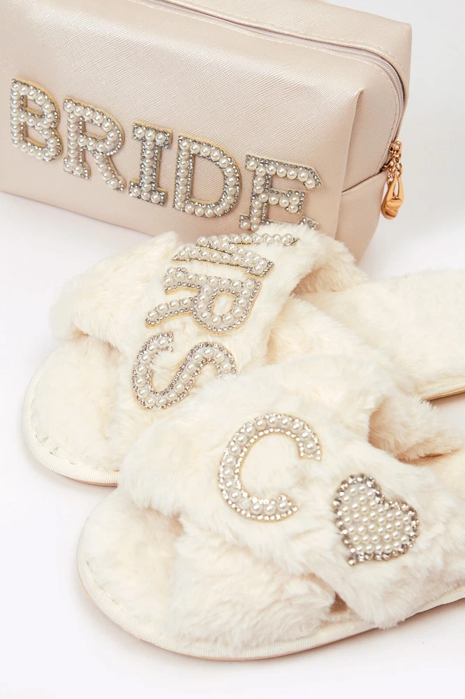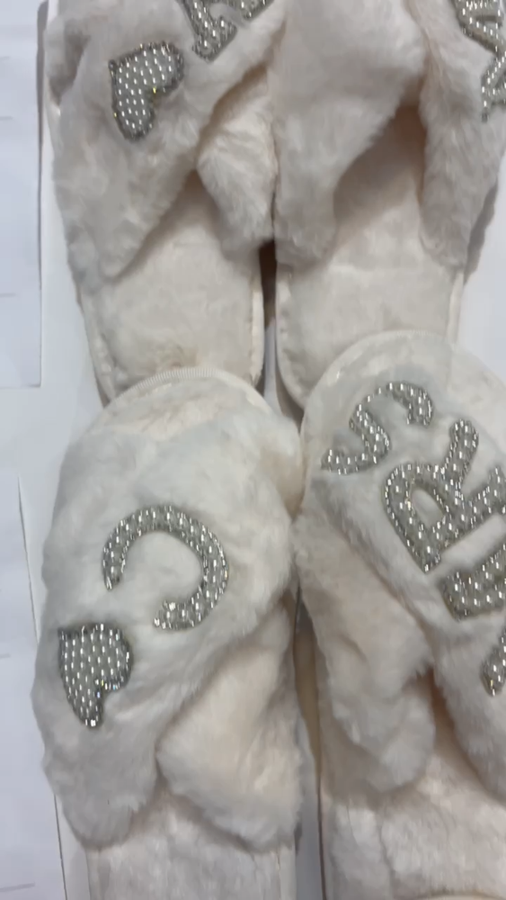 Bride Slippers, Fluffy Cross Pearls slippers, Bride Gift, Bridal Shower Gift, Bachelorette Party Gift, I Do Slippers, Custom Slippers-patches Our slippers are customized with letter rhinestone/pearls patches. . The letters are so pretty and detailed. It is perfect to put the first letter of your name or first/last name or wedding role . Whether you want to buy it as a gift, keep it for yourself and wear it everyday or even wear it for a bachelorette weekend or honeymoon trip , these unique customized slippers are sure to work for any occasion. Small (5-6); Medium(7-8); Large (8-9); XL(10-11) As all of our products are personalized, we do not accept returns!