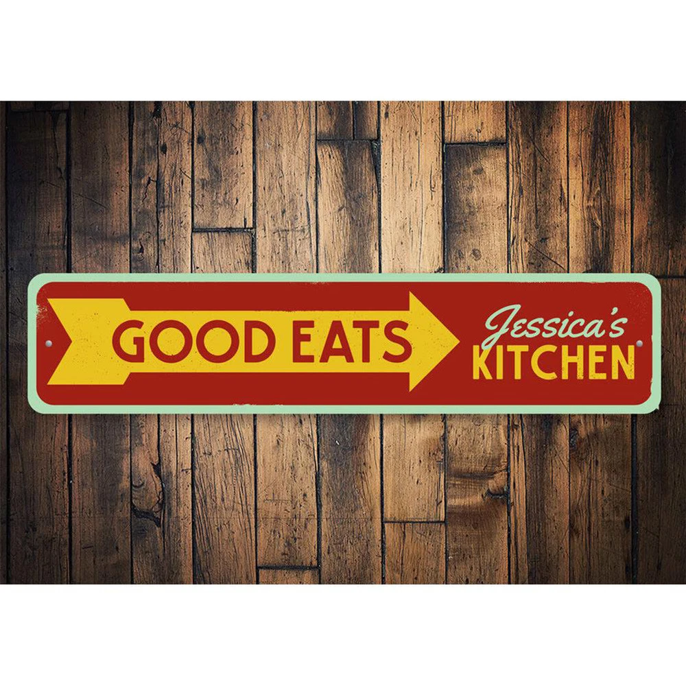 The Lizton Sign Shop Product Description Personalized Good Eats Arrow Name Kitchen Aluminum Metal Decor Sign **there may be slight variations in color and text spacing, however your sign will be very similar to the image above. Quality Aluminum Street Signs Sign Information Aluminum Brand New Sign Comes with rounded corners and pre-drilled for easy hanging. We use the highest quality materials - 100% USA-made! Great Gift Idea - Our signs truly make a one of a kind gift. Personalize the sign with the text you want to add. Custom text for the sign can be sent to us via email. A BRAND NEW SIGN!! All of our street signs are made of premium materials. The sign itself is made of aluminum and will never rust providing years of enjoyment indoors and outdoors. No Cheap plastic!! The Lizton Sign Shop specializes in quality personalized custom aluminum signs for any occasion. These make the perfect sign for any man cave, office, basement, garage, college dorm, kids bedroom, game room, bar, pub, tavern or countless other places. *Colors may vary slightly from one computer screen to the next but the image should be very close. All content and designs are subject to copyright and may not be reproduced in any form. Payment Methods We would prefer payment to be made through paypal but we also accept all major credit cards. If you select the credit card option please contact us after you make your purchase and we can walk you through the steps to make a secure payment. Return Policies We will accept returns within 30 days of the purchase date. The buyer is responsible for any costs to return the item or items. Returns will only be accepted for items that were damaged in shipping or if we made an error in the manufacturing of your item, i.e. spelling error.