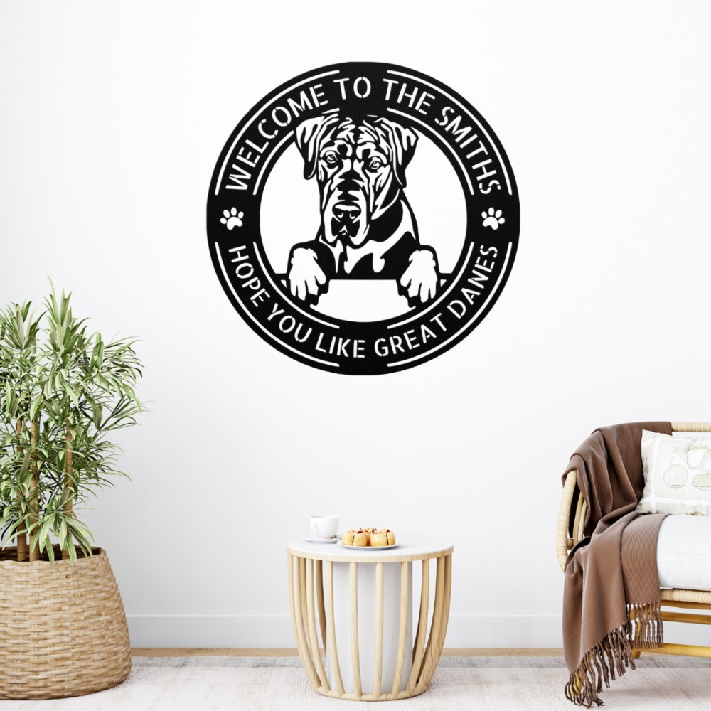 Product Description Celebrate your love for your Great Dane with our Personalized Great Dane Metal Sign . This beautifully designed sign is perfect for dog lovers who want to add a personal touch to their home or office decor. Crafted from high-quality 16 gauge metal, it is both durable and weather-resistant, thanks to its protective powder-coated finish. This makes it ideal for indoor and outdoor use, resisting dust, water, and fading. You can personalize this sign with your Great Dane’s name, making it a unique gift or a wonderful addition to your own space. It’s a thoughtful present for Christmas, birthdays, or any special occasion where you want to show appreciation for a fellow dog lover. Hang it in your living room, office, or garden to bring warmth and character to your surroundings. Key Features: Customizable Design: Add your Great Dane’s name for a personalized touch. Durable Material: Made from 16 gauge high-quality metal for long-lasting strength. Weather Resistant: Powder-coated finish protects from dust, rain, and fading. Versatile Decor: Perfect for home, office, or outdoor spaces. Ideal Gift: A great present for dog lovers on birthdays, Christmas, or special occasions. Make your space truly special or surprise a loved one with this thoughtful and charming sign. Order your Personalized Great Dane Metal Sign today and celebrate the joy your pet brings to your life! Service and Color Choice My metal signs are designed to be personalized just for you, making them the perfect addition to any space! The default color is Black , but I also offer a variety of beautiful options including Copper, Gold, White, and Silver . After placing your order, simply contact me with your preferred color choice, and I'll ensure your sign is exactly how you envision it. Let’s create something special together! 📏 How Metal Signs Are Measured Metal signs are measured from the widest point to the opposite widest point of the design. The listed size (8”, 10”, 12”, 18”, 24”, 30”, 36”, etc.) always refers to the longest edge of the artwork, not the height only and not the width only. Because every design has its own shape and proportions, the other dimension (height or width) will adjust automatically . 🛠 Example (30-Inch Size) When selecting a 30-inch sign , the longest side of the design will measure 30 inches . If the design is wider than it is tall: Width = 30 inches Height adjusts proportionally (often around 18–22 inches depending on the design) If the design is taller than it is wide: Height = 30 inches Width adjusts proportionally This ensures the sign keeps its correct proportions and the original shape, no matter which size is selected. 🎨 Custom Designs & Logos Welcome Have a special idea in mind? I can make it happen! Whether you need a business logo , family emblem , pet silhouette , or a one-of-a-kind design , I can create it from scratch and turn it into a high-quality metal sign. You can send your concept, sketch, or photo, and I’ll handle the custom design, editing, and production from start to finish. Your vision becomes real metal artwork made exactly the way you want it. ✨ Custom Any Design: If you have a special idea in mind, I can turn it into a metal sign, just message me! 📦 Ordering & Gift-Ready Each sign is crafted to order with great care and attention to detail. Your piece arrives ready to hang , making it easy to display or give as a thoughtful gift. Whether it's for your home or for someone special, every sign is made to impress and last for years. 💖 Your support means the world to me and my family. Thank you for helping keep this small art business growing. 🚚 Production & Shipping Every sign is made to order with a fast turnaround time. Production Time: 1–2 business days Free Shipping: UPS Ground (estimated 2–5 business days ) Expedited Shipping: FedEx 2-Day Delivery available at checkout Shipping Location: All orders ship from Indiana, USA Each order is packed securely to ensure your metal sign arrives safely and ready to display.