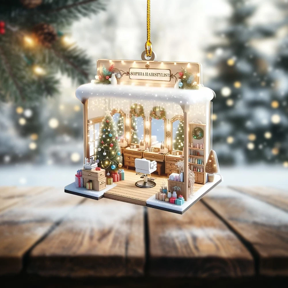 Personalized Hair Salon 2D Flat Printed Acrylic Ornament Not 3D Hairdresser Gif