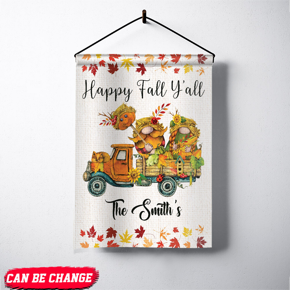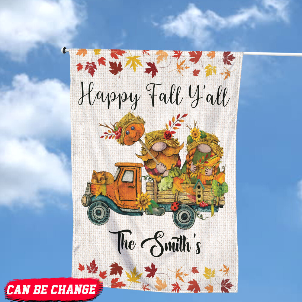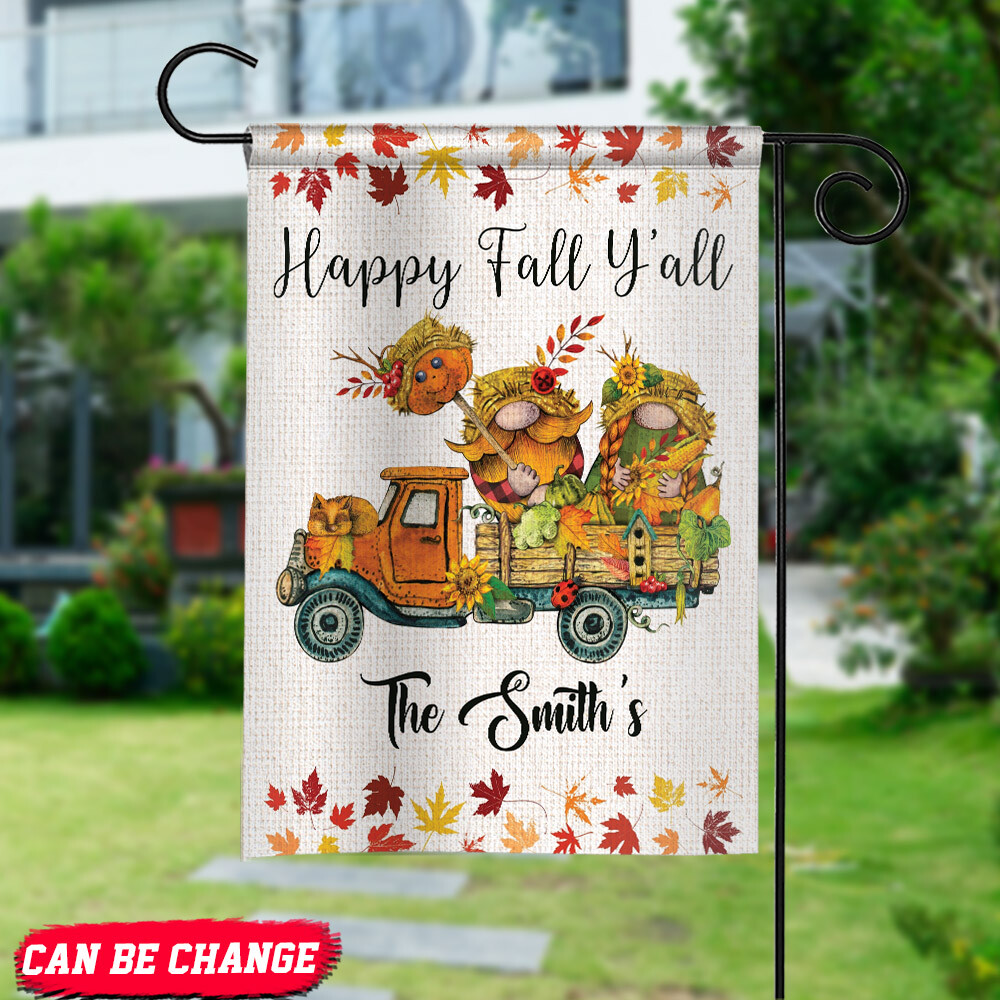 Personalized Happy Fall Y'all Garden Flag, Personalized Fall Gnomes Flag, Fall Gnomes Double Sided Garden Flag, Happy Fall Garden Flag ID-0823-K2HX High-resolution digital printing on durable corflute material Free from holes, grommets, strings, or nails Completely customizable & available in 2 pre-defined sizes 2-sided printing Flag stands and poles not included. Printed on a premium polyester with vibrant colors. Perfect for indoor and outdoor use. Easy to hang, fold up and pack away. Due to the different monitor and light effect, the actual color of the item might be slightly different from the visual pictures. (Sent Your Custom Name Via Message. Thank You!)