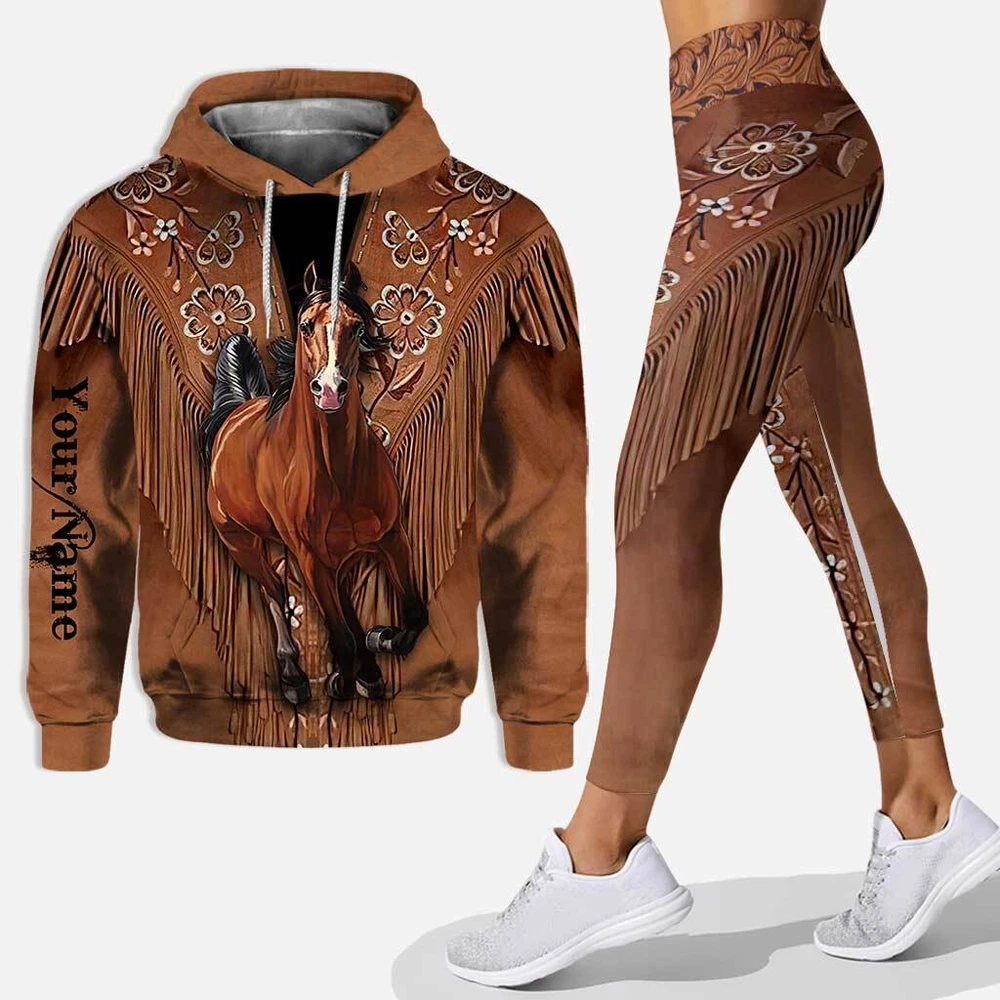 Personalized Horse Girl Hoodie And Leggings With Leather Pattern Print
