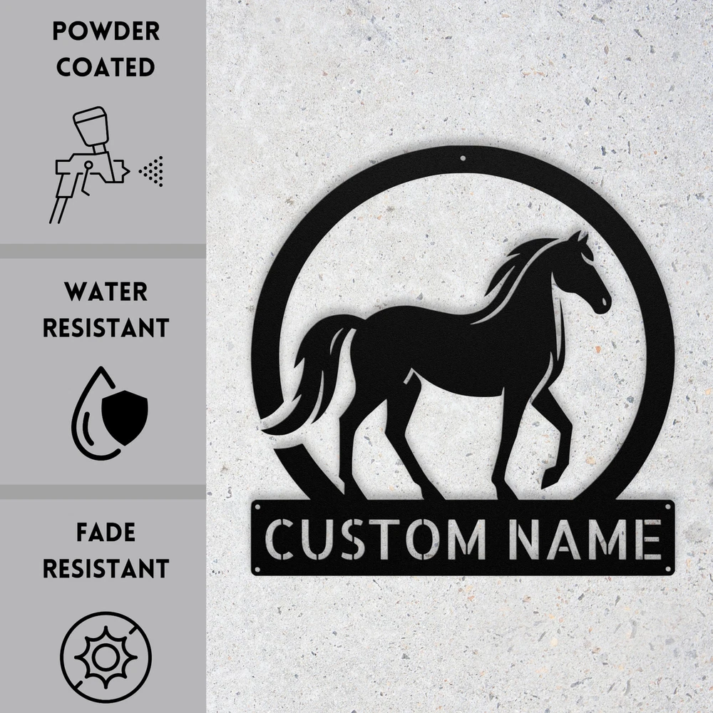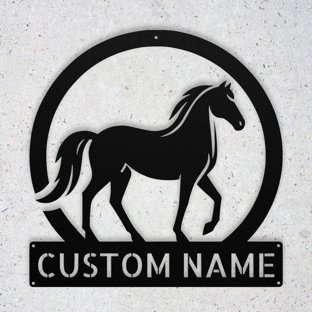 Product Description Personalized Horse Metal Sign Custom Wall Art Decor Gift for Horse Lovers Home Bring elegance to your space with our Personalized Horse Metal Sign ! This custom wall art decor is perfect for horse lovers, adding a unique touch to any room. Made from high-quality 16-gauge metal, this sign features a durable powder coating that makes it resistant to dust, weather, and water, ensuring it looks great inside or outside. Searching for a meaningful gift? This personalized metal sign is an ideal choice for Christmas, birthdays, or any special occasion. It also makes a lovely addition to your own home or office, showcasing your passion for horses. Key Features: Customizable Design : Personalize the sign with your name or a special message. Durable Material : Made from 16-gauge high-quality metal for lasting beauty. Weather-Resistant : Powder-coated finish protects against dust, rain, and rust. Versatile Decor : Suitable for both indoor and outdoor display. Great Gift Idea : A thoughtful present for any horse enthusiast. Celebrate your love for horses or surprise a friend with this beautiful metal sign. Order yours today and add a personal touch to your decor! Service and Color Choice Our metal signs are designed to be personalized just for you, making them the perfect addition to any space! The default color for our signs is Black , but we also offer a variety of beautiful options including Copper, Gold, White, and Silver . After placing your order, simply contact us with your preferred color choice, and we'll ensure your sign is exactly how you envision it. Let’s create something special together!