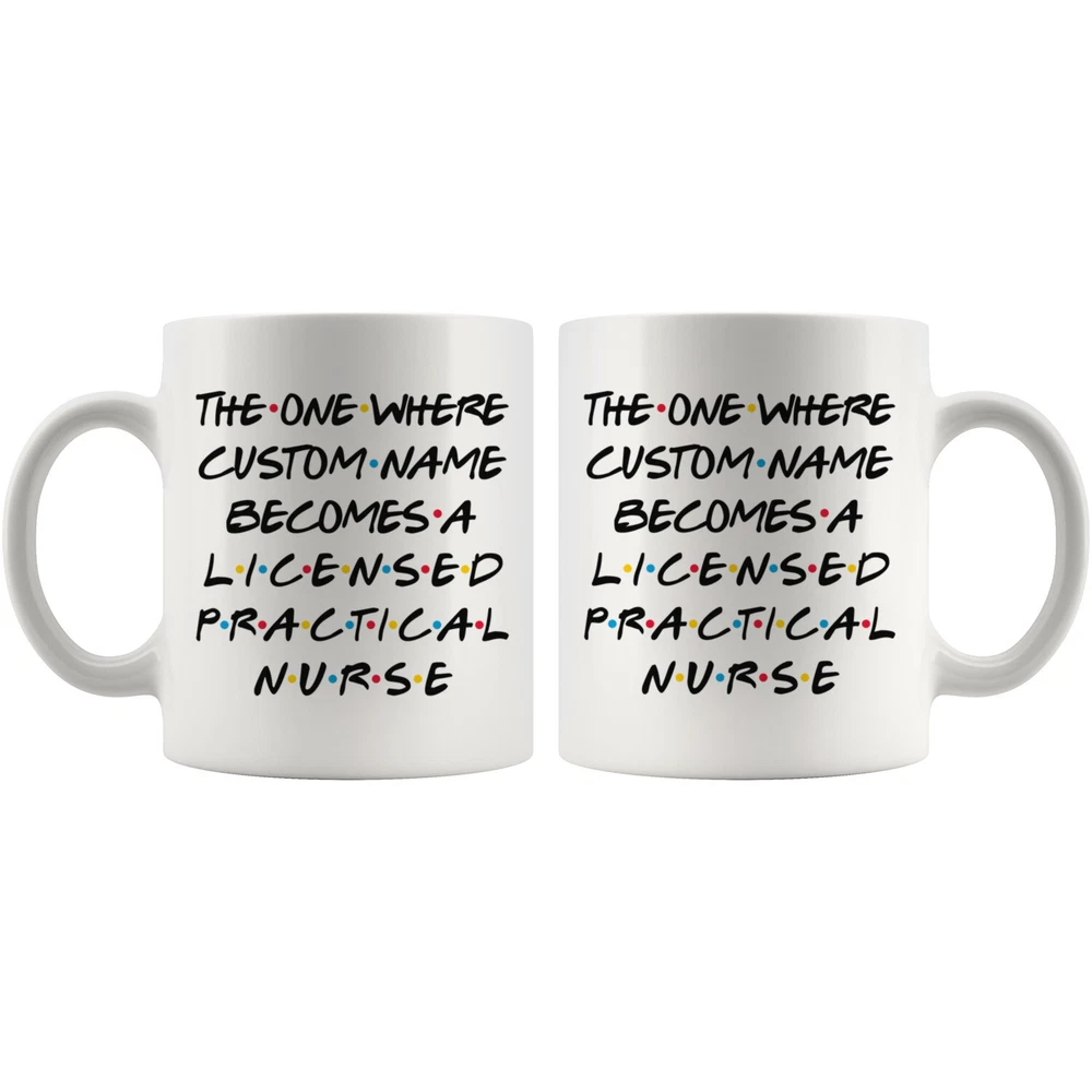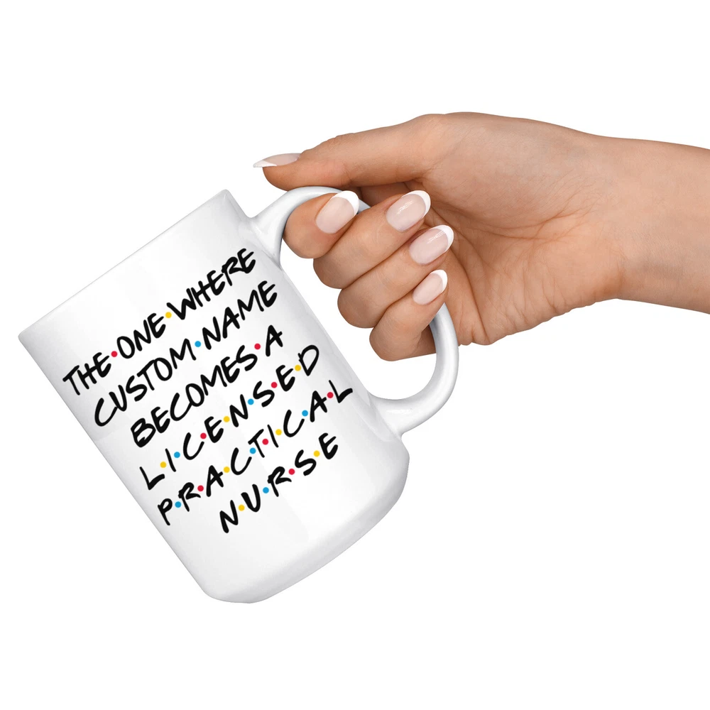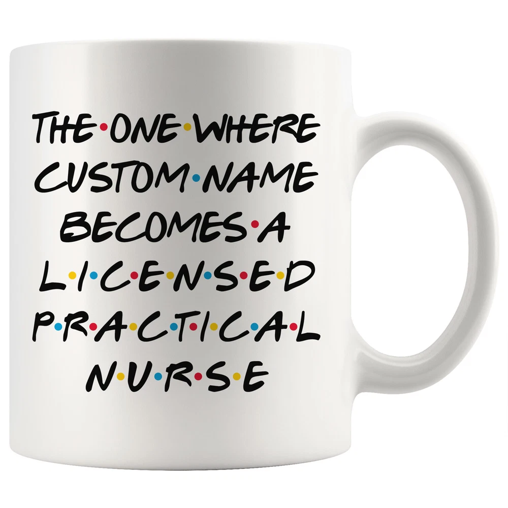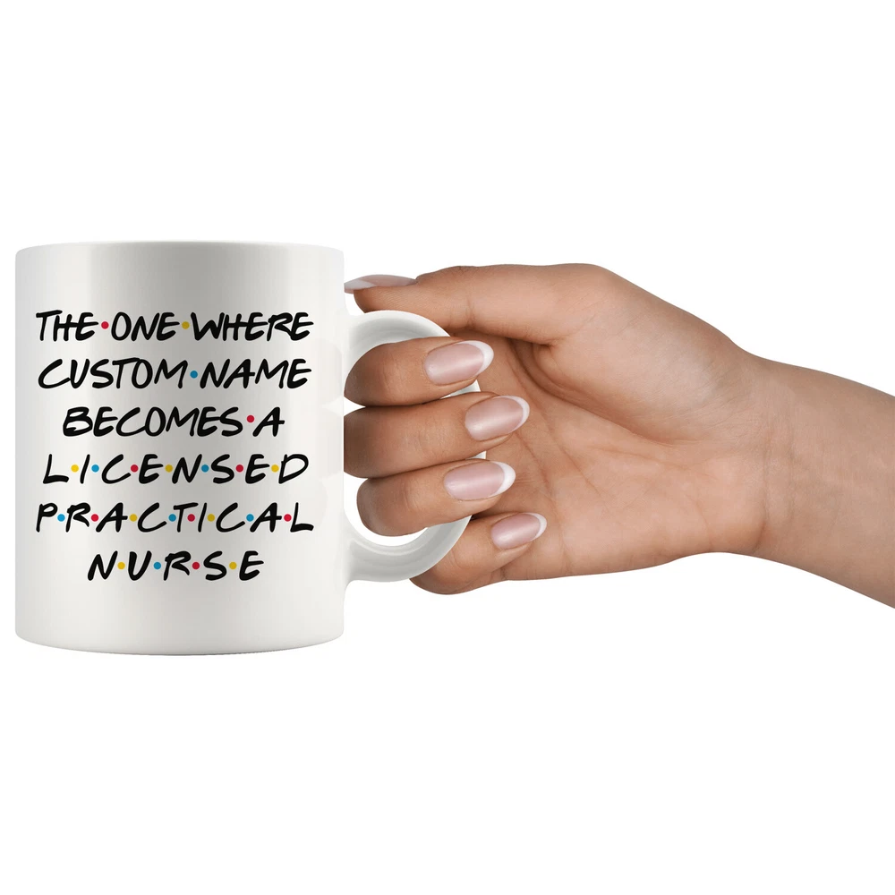 personalized licensed practical nurse coffee mug, gift for a LPN, licensed practical nurse graduation gift, licensed practical nurse job promotion, LPN coffee cup, gifts for men & women, best LPN coffee mug, mothers day gift, fathers day gift, LPN career job appreciation gift, gifts for her, gifts for him This is the perfect coffee mug with content " THE ONE WHERE 'CUSTOM NAME' BECOMES A LICENSED PRACTICAL NURSE ". CUSTOM NAME Please put the custom name in the notes at the checkout or send us a message. By not doing this, it will delay your order. Example: Custom name: Lynda. A PERFECT GIFT FOR A LICENSED PRACTICAL NURSE ! This special coffee cup can be a great gift for the best Licensed Practical Nurse. Bring a smile to your family member or friend with this unique gift . DISHWASHER AND MICROWAVE SAFE! This version of ceramic mug shows it's true colors with quality assurance to withstand heat in the microwave and put it in the dishwasher as many times as you like, the quality will not be Altered. THE MUG DESIGN IS PRINTED ON BOTH SIDES! No matter if you hold your teacup in your right or left hand, you and everyone else will be able to see this unique design. Looking at this cute coffee mug will put a smile on everyone's face! We want you to be 100% satisfied, so please let us know if there is anything wrong with your order so we can fix it right away.