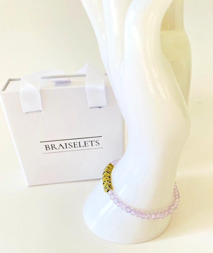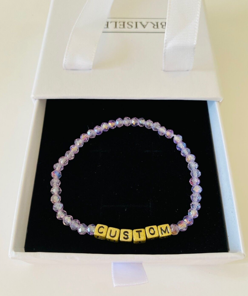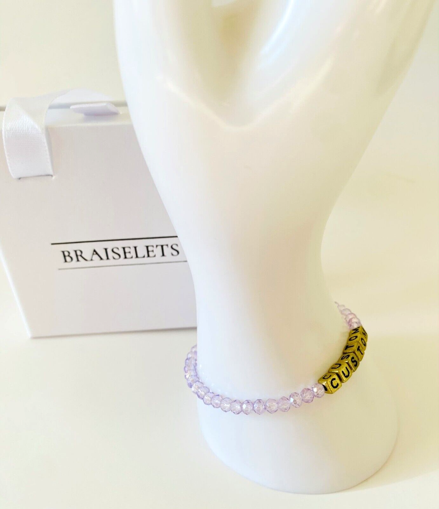 Embrace the elegance of a personalized touch with our Lilac Purple Crystal Beaded Bracelet. This exquisite minimalist bracelet is perfect for adding a unique and meaningful accent to any outfit. It is available in sizes for Toddler, Big Kid, Adult Small, Adult Medium, and Adult Large. Great gift for: loved ones, family reunion, women's group, bachelorette parties, travel club, book club, team bonding, school spirit, memorials, coworkers, neighbors, holiday gifts or simply a sentimental treat for yourself. Enjoy the sparkle and sentiment with this beautiful 4mm crystal bracelet. What's in my order? Custom Name Bracelet Free Gift Box Free Shipping In The USA
