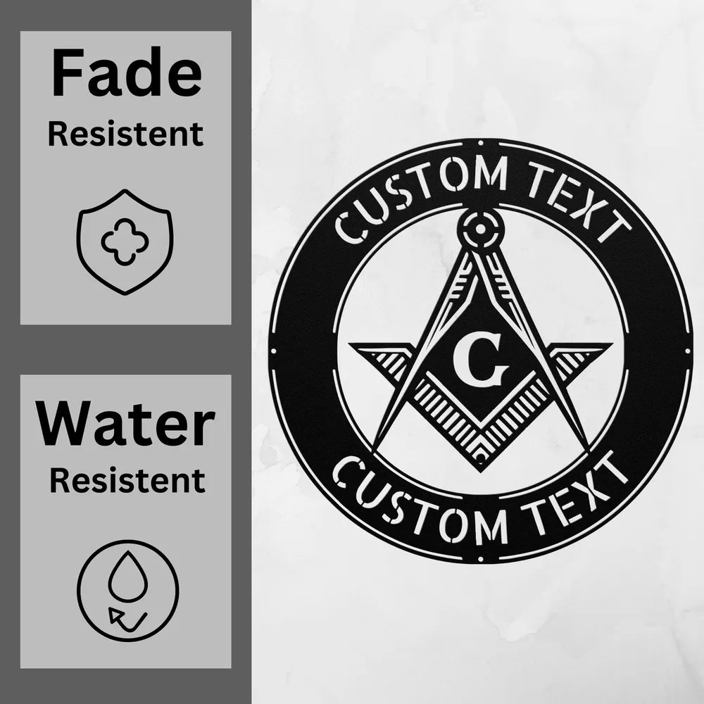 Product Description Personalized Masonic Symbol Metal Sign Custom Name Decor Gift for Masons Honor your beliefs with our Personalized Masonic Symbol Metal Sign ! This beautiful sign is perfect for showcasing your Masonic pride at home or in the office. Crafted from 16 gauge high-quality metal , this sign is built to last. The powder coating ensures it is dust, weather, and water-resistant, making it suitable for both indoor and outdoor display. Key features include: Customizable Design: Personalize it with your name or a meaningful phrase to make it uniquely yours. Durable Construction: Made to withstand the elements, this sign is perfect for long-lasting use. Thoughtful Gift Idea: An ideal gift for Christmas, birthdays, or any special occasion for Masons and their families. Elegant Decor: Enhance your home or office space with this stylish and meaningful decoration. Celebrate your values and identity with the Personalized Masonic Symbol Metal Sign . It’s more than just a decoration; it’s a testament to your journey and commitment! Service and Color Choice Our metal signs are designed to be personalized just for you, making them the perfect addition to any space! The default color for our signs is Black , but we also offer a variety of beautiful options including Copper, Gold, White, and Silver . After placing your order, simply contact us with your preferred color choice, and we'll ensure your sign is exactly how you envision it. Let’s create something special together!