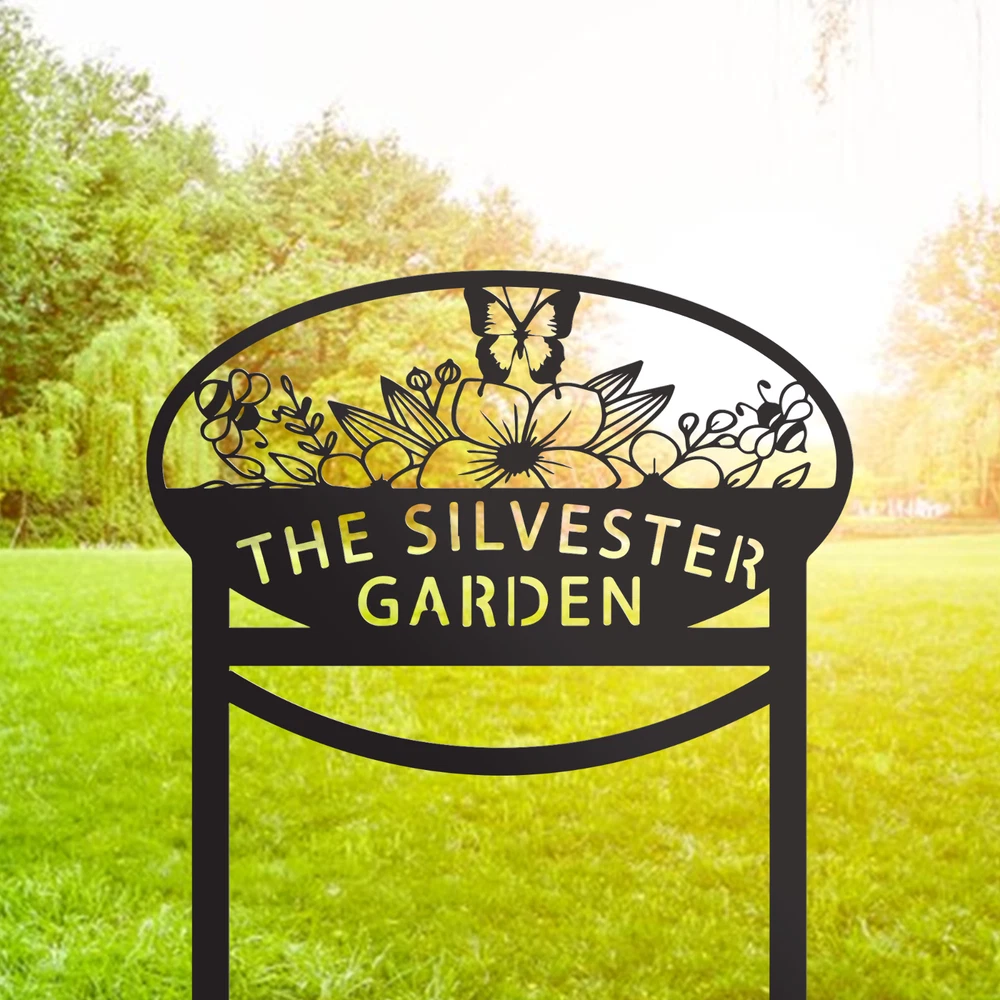 Personalized Metal Garden Sign With Stakes, Sign for Flower Beds, Custom Garden