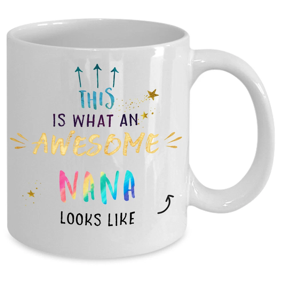 Personalized Mug For Nana Awesome Nana Mother's Day Gift Custom Mothers Day Product Details.. This high quality 11oz. ceramic white mug has a premium hard coat that provides crisp and vibrant color reproduction sure to last for years. Perfect for all hot & cold beverages. The highest quality printing possible is used. It will never fade no matter how many times you wash it. Material: 100% Ceramic. Print both sides. Dishwasher and Microwave Safe. High Gloss + Premium White Finish. Printed in the U.S.A. Personalized & Custom. We support personalized and custom mug to add custom, when placing an order, you can add notes to the "order note" in shipping address section. Also you can contact us directly via message. Shipping Info. Ready to ship in 1 to 2 business days, All products are made-to-order and proudly printed in the United States. Shipped by USPS and DHL, You will receive your order in 5-7 days. Replace & Refund. All products are defective during shipping broken, chipped will be replaced free of charge. You are not satisfied with the product, we will refund 100% money to you. If any other issues arise, please do not hesitate to message, we would be more than happy to assist you.