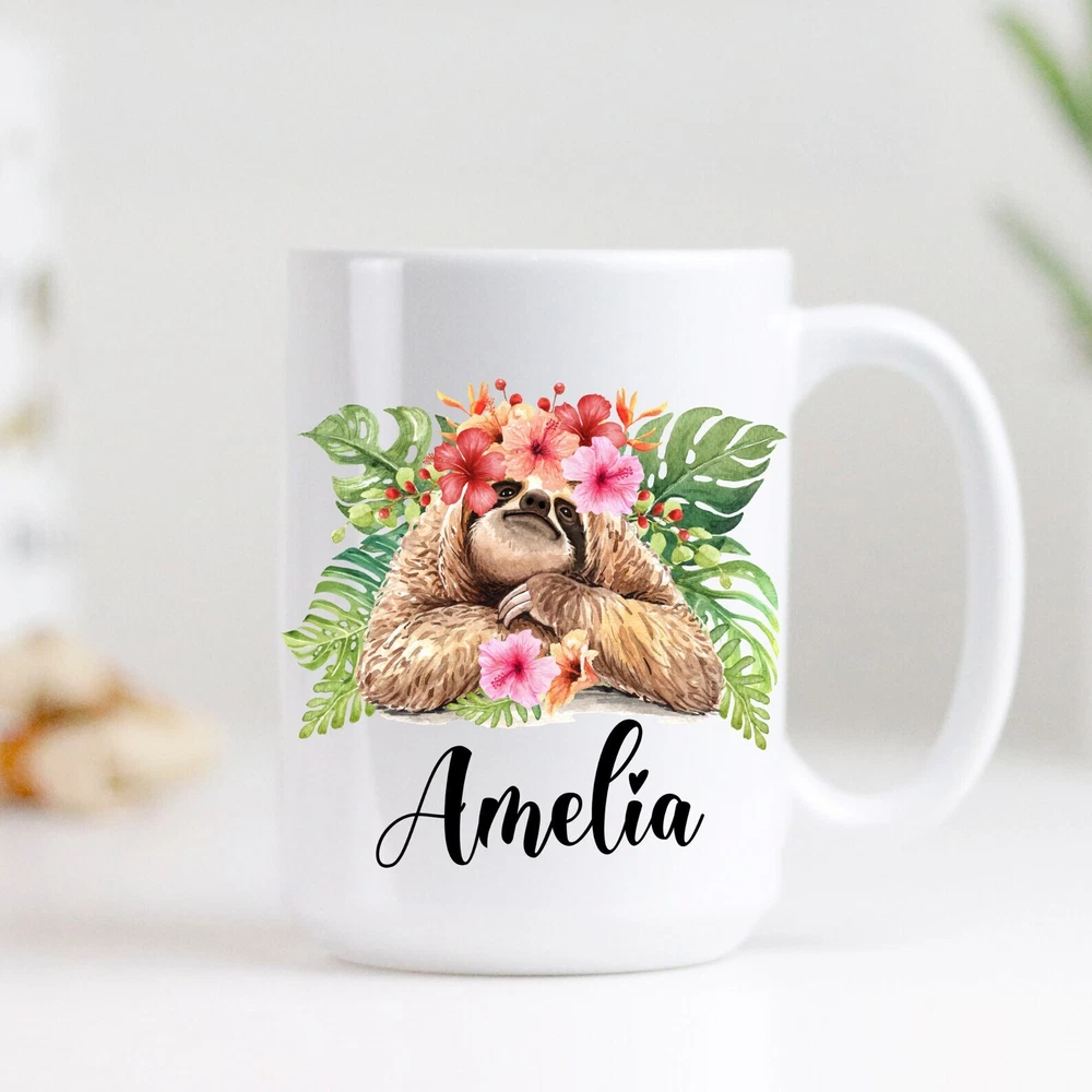 Personalized Name Mug Floral Sloth Mug Cute Sloth Coffee Cup Appreciation Gift Product Details.. This high quality 11oz. ceramic white mug has a premium hard coat that provides crisp and vibrant color reproduction sure to last for years. Perfect for all hot & cold beverages. The highest quality printing possible is used. It will never fade no matter how many times you wash it. Material: 100% Ceramic. Print both sides. Dishwasher and Microwave Safe. High Gloss + Premium White Finish. Printed in the U.S.A. Personalized & Custom. We support personalized and custom mug to add custom, when placing an order, you can add notes to the "order note" in shipping address section. Also you can contact us directly via message. Shipping Info. Ready to ship in 1 to 2 business days, All products are made-to-order and proudly printed in the United States. Shipped by USPS and DHL, You will receive your order in 5-7 days. Replace & Refund. All products are defective during shipping broken, chipped will be replaced free of charge. You are not satisfied with the product, we will refund 100% money to you. If any other issues arise, please do not hesitate to message, we would be more than happy to assist you.