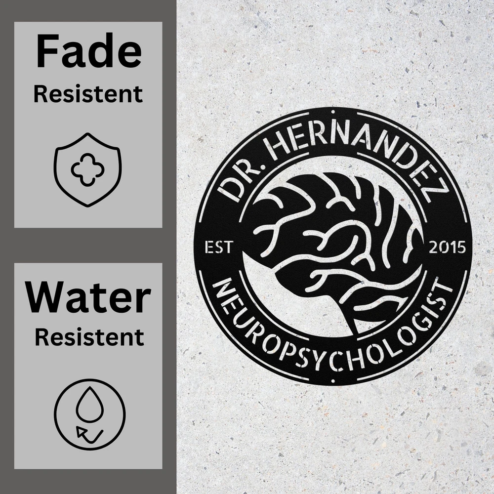 Product Description Personalized Neurologist Doctor Metal Sign Neuroscience Art for Clinic or Home Showcase your passion for neuroscience or celebrate a neurologist’s dedication with this Custom Metal Brain Sign . This personalized wall art is a sophisticated and meaningful addition to any office, clinic, or home decor, perfect for medical professionals, students, or anyone fascinated by the brain and the wonders of science. Key Features: Personalized Design: Add your name, title, or custom message for a unique and professional touch. Premium Quality: Made from high-quality 16-gauge laser-cut metal with a durable powder-coated finish to ensure lasting beauty. Striking Brain Motif: Features an intricate brain design that symbolizes intelligence, science, and curiosity. Versatile Decor: Ideal for neurologists, doctors, medical students, or anyone in the healthcare field. Perfect for clinics, hospitals, offices, or study rooms. Indoor & Outdoor Use: Weather-resistant finish makes it suitable for display anywhere. Perfect Gift: A thoughtful and unique gift for neurologists, medical graduates, doctors, or neuroscience enthusiasts for any occasion, including graduations, birthdays, or holidays. Add a personalized and professional touch to your space with this Custom Metal Brain Sign , blending science, art, and individuality in a stunning display piece. Service and Color Choice Our metal signs are designed to be personalized just for you, making them the perfect addition to any space! The default color for our signs is Black , but we also offer a variety of beautiful options including Copper, Gold, White, and Silver . After placing your order, simply contact us with your preferred color choice, and we'll ensure your sign is exactly how you envision it. Let’s create something special together!