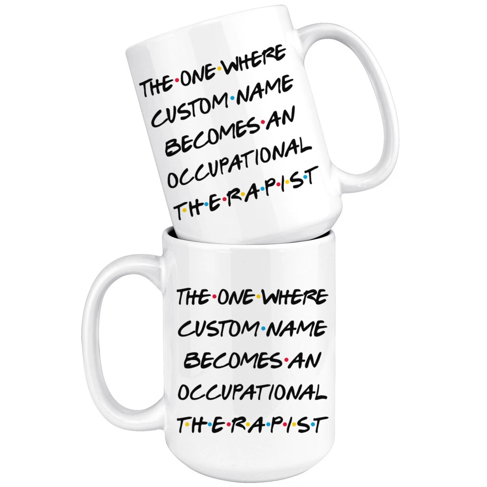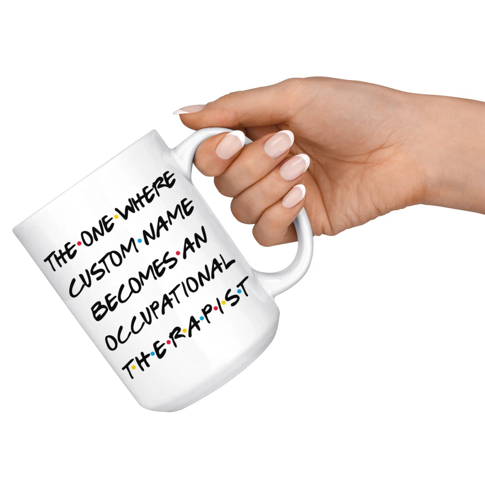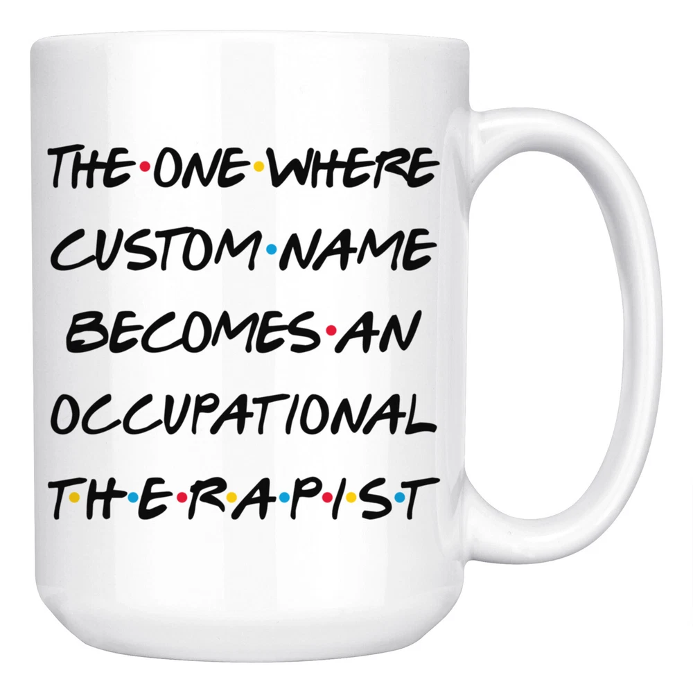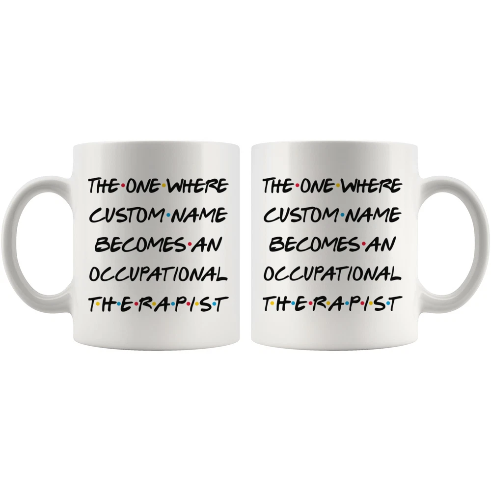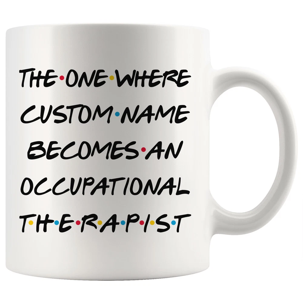 personalized occupational therapist coffee mug, gift for a occupational therapist, occupational therapist graduation gift, therapist job promotion, occupational therapist coffee cup, gifts for men & women, best occupational therapist mug, mothers day gift, fathers day gift, therapist career job appreciation gift, gifts for her, gifts for him This is the perfect coffee mug with content " THE ONE WHERE 'CUSTOM NAME' BECOMES AN OCCUPATIONAL THERAPIST ". CUSTOM NAME Please put the custom name in the notes at the checkout or send us a message. By not doing this, it will delay your order. Example: Custom name: Lynda. A PERFECT GIFT FOR AN OCCUPATIONAL THERAPIST ! This special coffee cup can be a great gift for the best Occupational Therapist. Bring a smile to your family member or friend with this unique gift . DISHWASHER AND MICROWAVE SAFE! This version of ceramic mug shows it's true colors with quality assurance to withstand heat in the microwave and put it in the dishwasher as many times as you like, the quality will not be Altered. THE MUG DESIGN IS PRINTED ON BOTH SIDES! No matter if you hold your teacup in your right or left hand, you and everyone else will be able to see this unique design. Looking at this cute coffee mug will put a smile on everyone's face! We want you to be 100% satisfied, so please let us know if there is anything wrong with your order so we can fix it right away.