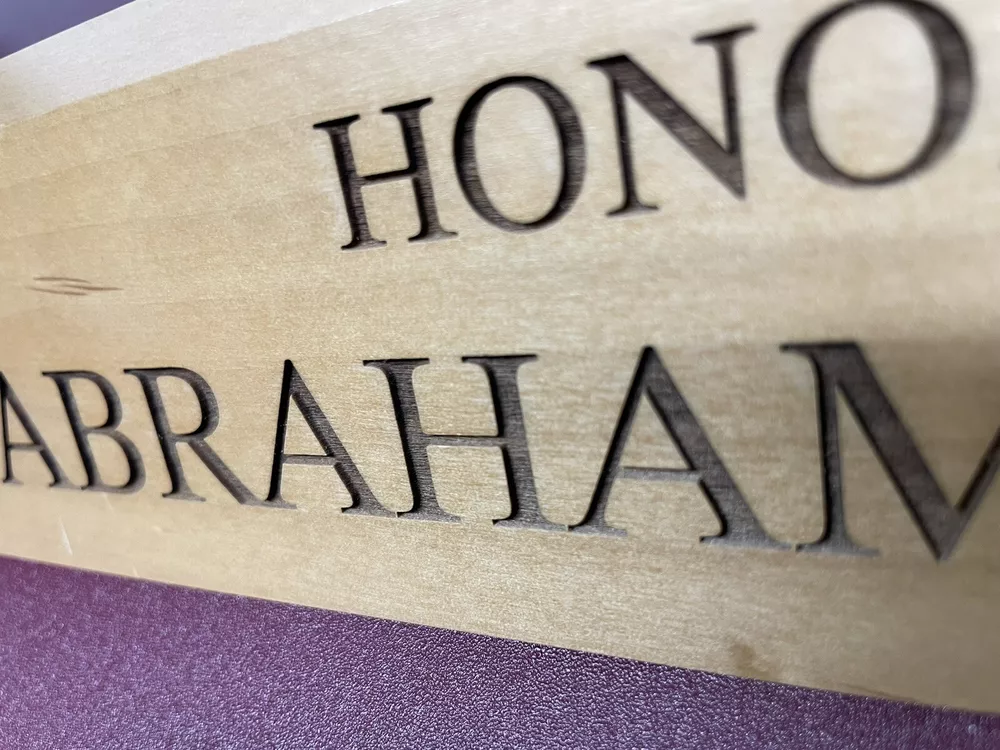 Beautiful Custom Laser Engraved Solid Red Alder Personalized Desk Wedge. Makes a great gift for recent graduates, teachers, someone recently promoted, and other professionals or for yourself. This massive 15" x 2¼ x 1¾ desk nameplate will make a bold statement. FREE ENGRAVING. Up to 3 Lines but 2 looks best such as a name and a title. See sample "Abraham Lincoln" in pic. Indicate your engraving in "buyer comments." Be sure and check your spelling!