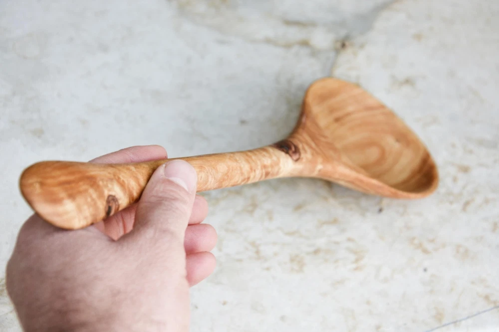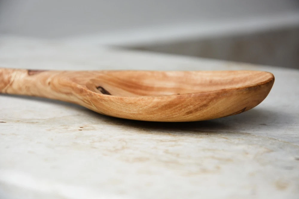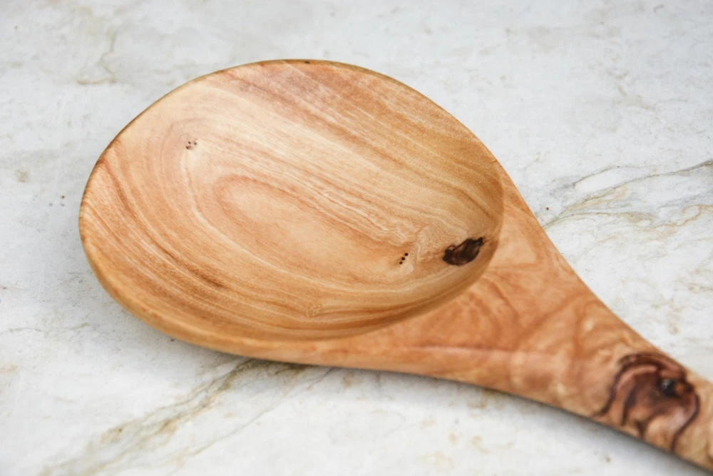 This pretty and useful olive wood spoon is a fair trade product handmade in Tunisia. Each piece is hand crafted and no 2 pieces are exactly alike. Prized for its variations in characteristics, olive wood is naturally strong and elegant. ๐ Dimensions -Long: 35 cm / 13.7 inches -Bowl diameter: 10 cm / 4 inch ๐ธ Please note : Photo is the exact one that is shipped Olive wood also has antibacterial properties, and is resistant to stains and odors It should be hand washed with a mild detergent and immediately wiped dry. Once a month, you should rub your olive wood spoon with vegetable oil and wipe off any excess. ๐ซ Care instructions Rub your olive wood product with olive, peanut or sunflower oil once a month. Dip a paper towel into the oil and gently rub, using a circular motion, over the surface of the wood. Work the oil into the sides, top and bottom of the olive wood.