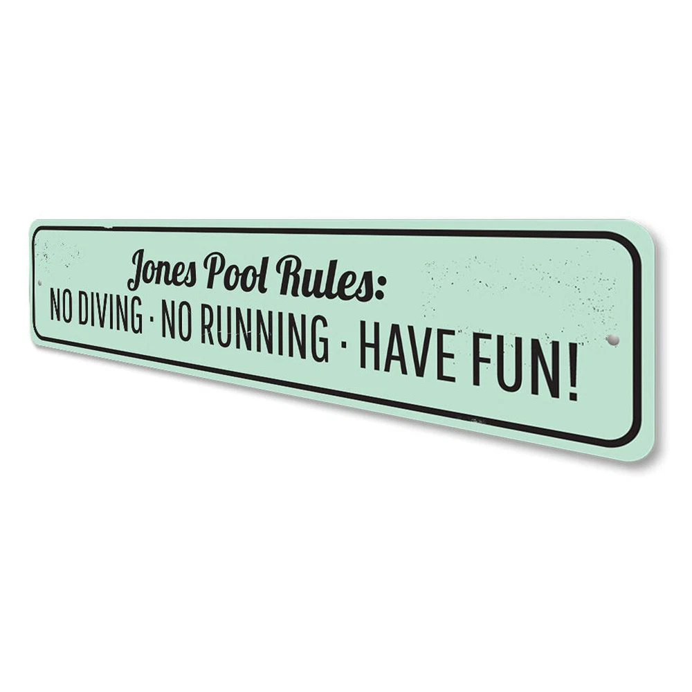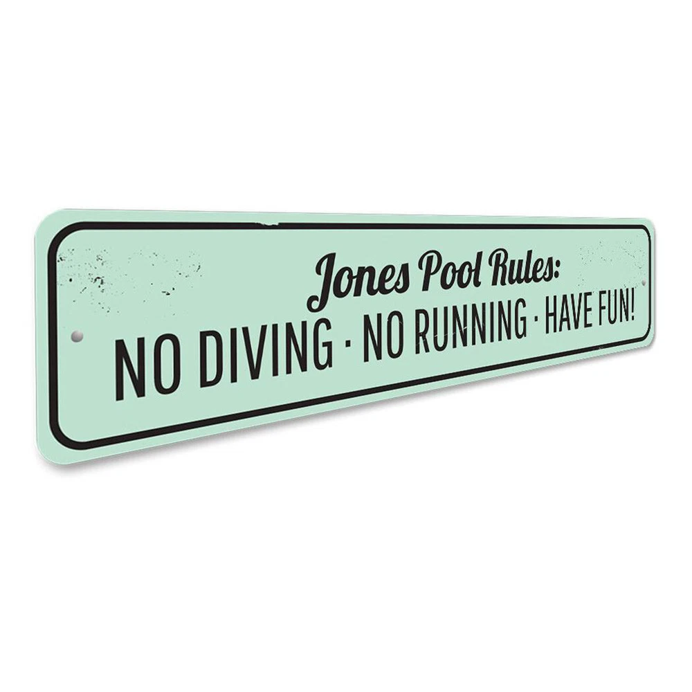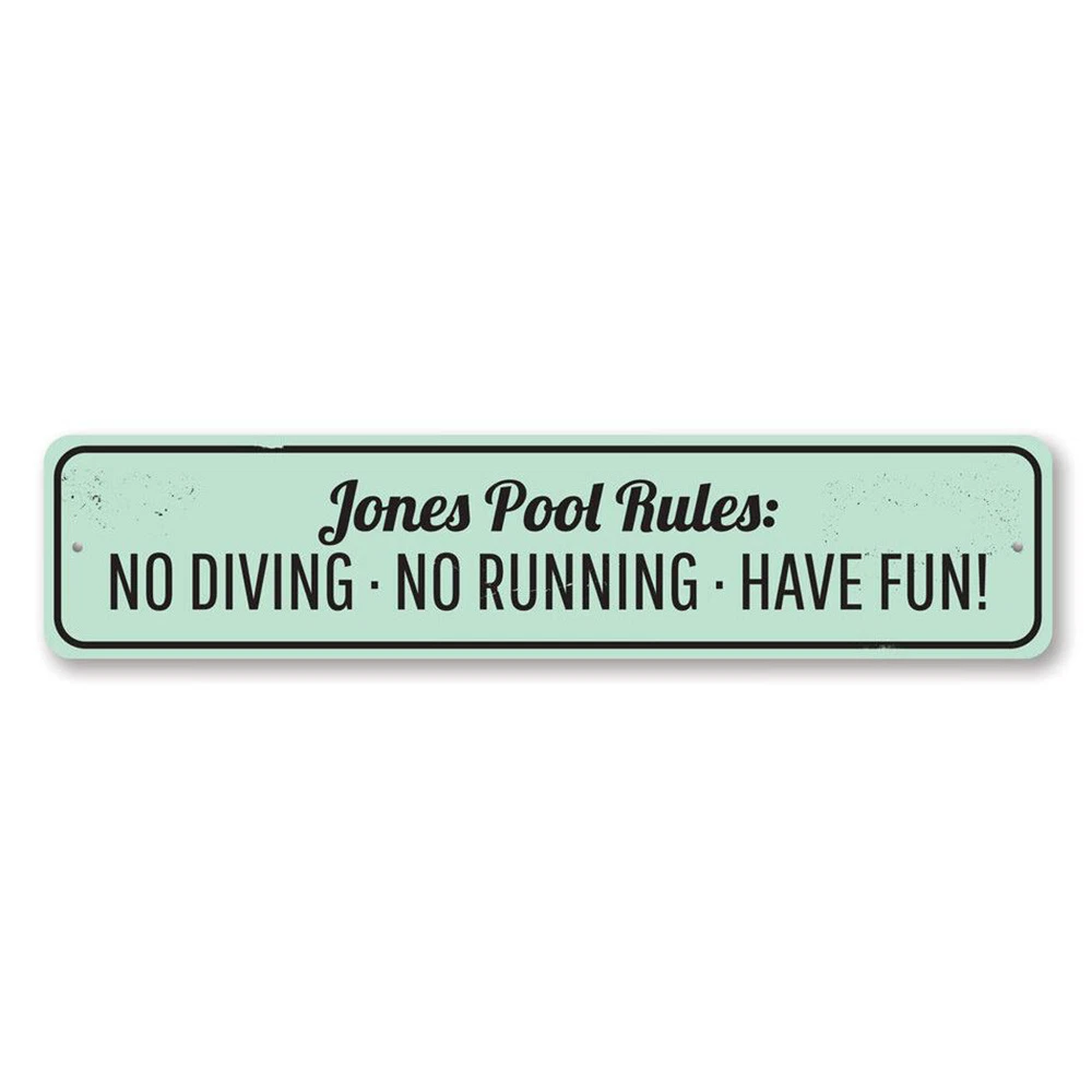 The Lizton Sign Shop Product Description Personalized Pool Rules Family Name Aluminum Metal Decor Sign **there may be slight variations in color and text spacing, however your sign will be very similar to the image above. Quality Aluminum Street Signs Sign Information Aluminum Brand New Sign Comes with rounded corners and pre-drilled for easy hanging. We use the highest quality materials - 100% USA-made! Great Gift Idea - Our signs truly make a one of a kind gift. Personalize the sign with the text you want to add. Custom text for the sign can be sent to us via email. A BRAND NEW SIGN!! All of our street signs are made of premium materials. The sign itself is made of aluminum and will never rust providing years of enjoyment indoors and outdoors. No Cheap plastic!! The Lizton Sign Shop specializes in quality personalized custom aluminum signs for any occasion. These make the perfect sign for any man cave, office, basement, garage, college dorm, kids bedroom, game room, bar, pub, tavern or countless other places. *Colors may vary slightly from one computer screen to the next but the image should be very close. All content and designs are subject to copyright and may not be reproduced in any form. Payment Methods We would prefer payment to be made through paypal but we also accept all major credit cards. If you select the credit card option please contact us after you make your purchase and we can walk you through the steps to make a secure payment. Return Policies We will accept returns within 30 days of the purchase date. The buyer is responsible for any costs to return the item or items. Returns will only be accepted for items that were damaged in shipping or if we made an error in the manufacturing of your item, i.e. spelling error.