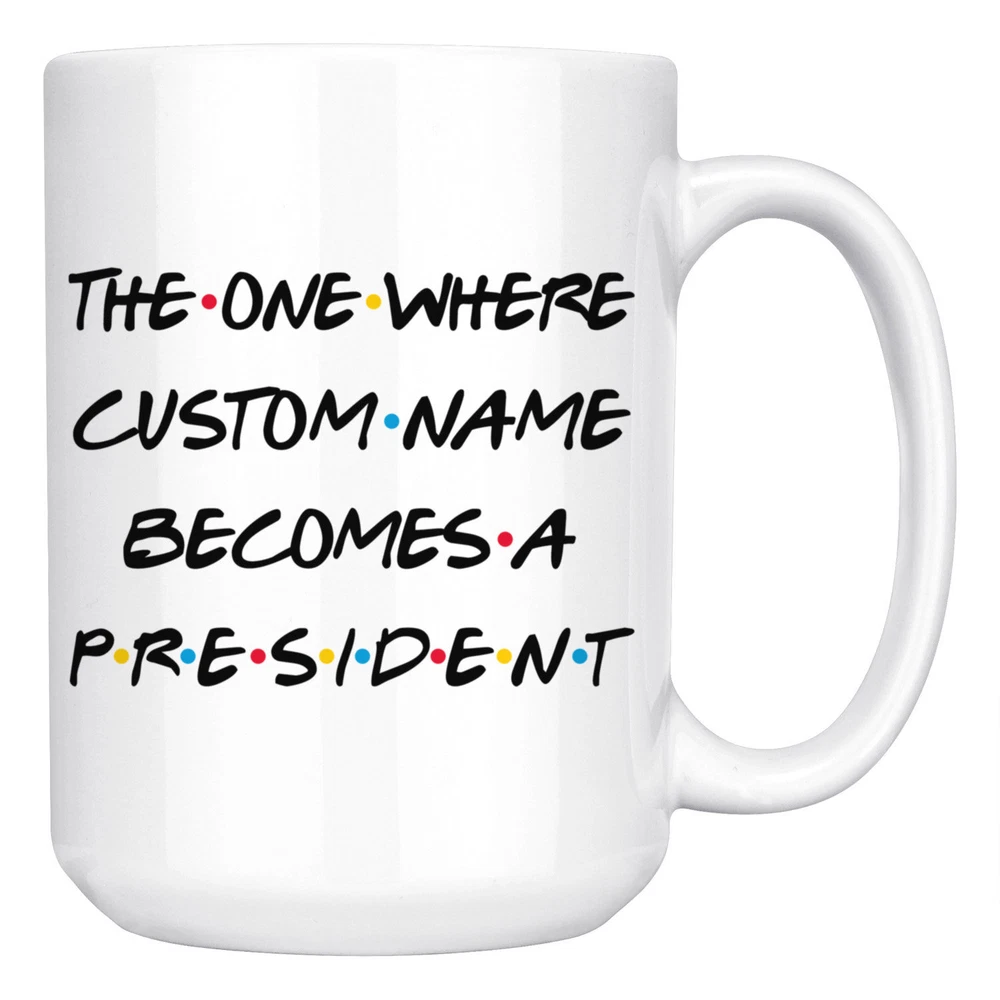 Personalized President Coffee Mug President Promotion Present Best President Product Details.. This high quality 11oz. ceramic white mug has a premium hard coat that provides crisp and vibrant color reproduction sure to last for years. Perfect for all hot & cold beverages. The highest quality printing possible is used. It will never fade no matter how many times you wash it. Material: 100% Ceramic. Print both sides. Dishwasher and Microwave Safe. High Gloss + Premium White Finish. Printed in the U.S.A. Personalized & Custom. We support personalized and custom mug to add custom, when placing an order, you can add notes to the "order note" in shipping address section. Also you can contact us directly via message. Shipping Info. Ready to ship in 1 to 2 business days, All products are made-to-order and proudly printed in the United States. Shipped by USPS and DHL, You will receive your order in 5-7 days. Replace & Refund. All products are defective during shipping broken, chipped will be replaced free of charge. You are not satisfied with the product, we will refund 100% money to you. If any other issues arise, please do not hesitate to message, we would be more than happy to assist you.
