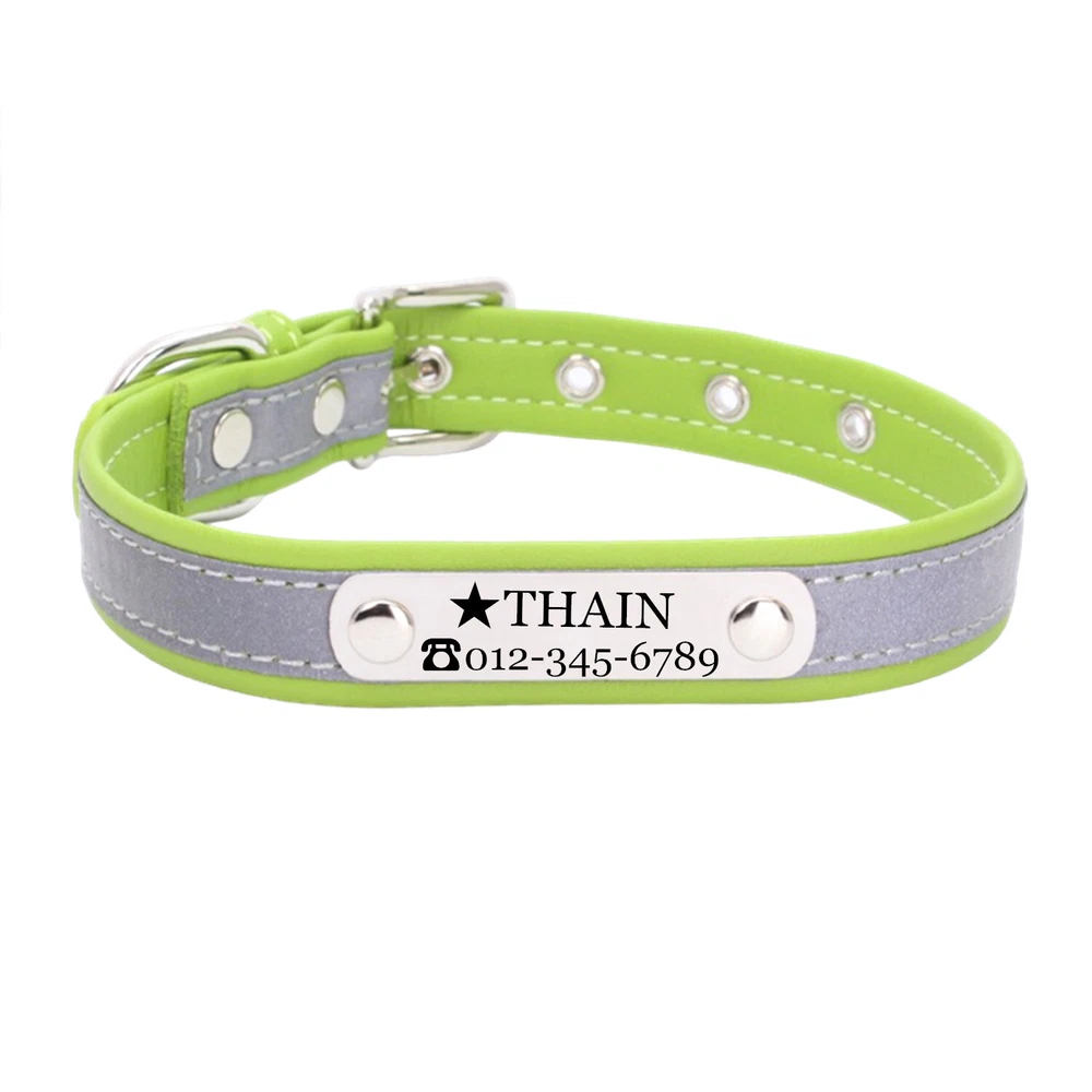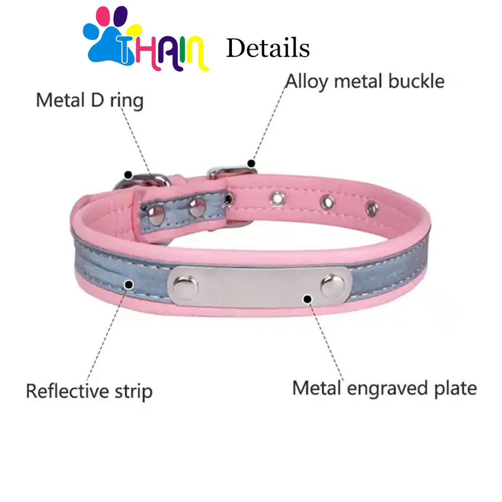 Product Name: THAIN Personalized Reflective Cat Dog Collar with Name Plate Custom Engraved Cute Puppy Kitten Dog Cat Collars for Male Female Boy Girl Small Medium Large Dogs Material: M icrofiber+Metal Buckle Size: XXS/S/M/L/XL(See the measurement on the size picture) Font used: Arial or Georgia How to Order Please write engraving details in box at the top of listing page. Product Features: ★ 【 Material H igh-grade microfiber material, softer and more comfortable than PU leather collars, Perfectly solves the problem of nylon collar trapped hair . ★ 【 Reflective 】 High brightness reflective strip, Under the light in the dark environment, the collar will emit more reflective effects. making it easier for people to see your pets. please not the collar does not emit light by itself. ★ 【 Metal Buckle and D-Ring 】 Buckle and D-ring are made of alloy metal with rounded corners, sturdy and rust-free. You can also add dog tags, rabies tags, or other tags to the D-ring. ★ 【 Available in 5 Sizes】 X-Small: 0.6"x(8.7-11"), Small: 0.6"x(10.6-13.4"), Medium: 0.8"x(11.4-15"), Large: 1.0"x(14.6-18.5"), X-Large: 1.0"x(18.5-22.4"). Please measure your pet's neck and choose the right size before purchasing(please leave two fingers room to keep pet's relax) Metal Nameplate where we will engrave the pet's name and phone number or address Laser engraving makes words are clear, keeps pet's information engraved permanent. This dog collar fits for many kinds of dogs, like Poodle, Pugs, Dachshund, Terrier, Beagle, Pitbull, Labrador, Bulldog and so on. Note: For engraved words,please send us a message as below: Line 1: pet's name ( you can add one symbol ★ ♂ ✿ ❤ ♛ ) Line 2: phone number (you can add one symbol ☎ ✆ ) Smaple: Line 1: ❤ Bella Line 2: ☎ 012-345-6789 How to choose the right size? Measurement Tips: Please use a soft ruler around your Cat's neck, to measure the surrounding of it. Please don't make it too tight. Better leave a space that can put 2 fingers. So your puppy may feel more comfortable. Size Width Neck Adjustable Weight XS 0.6"(1.5cm) 8.7-11"(22-28cm) 30g S 0.6"(1.5cm) 10.6-13.4"(27-34cm) 32g M 0.8"(2.0cm) 11.4-15"(29-38cm) 42g L 1.0"(2.5cm) 14.6-18.5"(37-47cm) 60g XL 1.0"(2.5cm) 18.5-22.4"(47-57cm) 70g Package include: 1 pcs pet collar Shipping: 1.Items will be sent out in 24-48 hours on payment received from Monday to Saturday. Orders during weekends and holidays will be posted in the following working day. 2.it usually will take 15-20 business days to arrive by SPEEDPAK. 3.Please make sure your shipping address and the order information is correct before placing an order. We will not be responsible for item loss due to wrong or unknown address. 4.International buyers are responsible for duties and customs fees. Return Policy & Warranty: 1. In our store, you will enjoy 30 days return/refund guarantee (Excluding misuse of the item and damaged item). 2. If the item you received is faulty, damaged or incorrect, or any further problems, you can return it for replacement or refund, please contact our customer service on eBay within 30 days from item received. 3.For damaged items on arrival, please contact us immediately, sending us an email with a photo is preferred. We will offer solutions to such cases. Full refund or replacement will be guaranteed. Contact us: Customer satisfaction is very important to us, our goal is to earn 5 star positive feedback on every sale! We would appreciate the chance to correct any problems before posting anything other than 5 stars positive feedback. So if for ANY reason you are not happy, please contact us directly through “My Massage” or "Ask Seller Q". We will get back to you as soon as we are available. We are always stand-by to help for any questions or concerns.