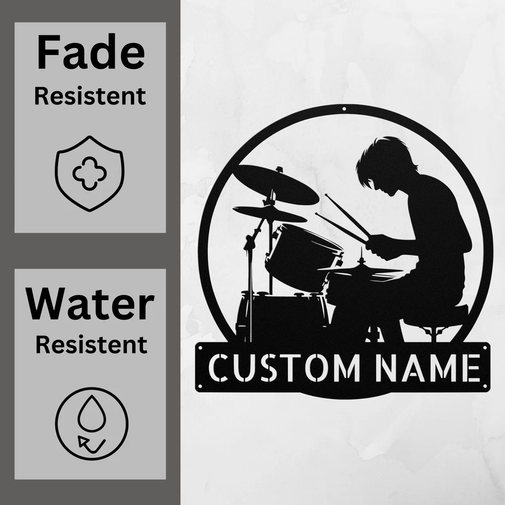 Product Description Personalized Rock Drummer Metal Sign Custom Name Decor Gift for Music Lovers Get ready to rock with our Personalized Rock Drummer Metal Sign ! This striking sign is a must-have for any music lover, drummer, or band enthusiast. Perfect for adding a touch of personality to your home, studio, or office. Made from 16 gauge high-quality metal , this sign is not only durable but also designed to withstand the test of time. The powder coating ensures that it is dust, weather, and water-resistant, making it suitable for both indoor and outdoor display. Key features include: Customizable Name: Personalize it with your name or your favorite drummer’s name for a unique touch. Durable Material: Built to last, this sign is perfect for displaying your love of music. Great Gift Idea: An ideal present for Christmas, birthdays, or any special occasion for musicians and music fans. Stylish Decor: Perfect for home, studios, or music rooms, adding a personal and creative flair. Showcase your passion for drumming with the Personalized Rock Drummer Metal Sign . It’s not just a decoration; it’s a celebration of your love for music! Service and Color Choice Our metal signs are designed to be personalized just for you, making them the perfect addition to any space! The default color for our signs is Black , but we also offer a variety of beautiful options including Copper, Gold, White, and Silver . After placing your order, simply contact us with your preferred color choice, and we'll ensure your sign is exactly how you envision it. Let’s create something special together!