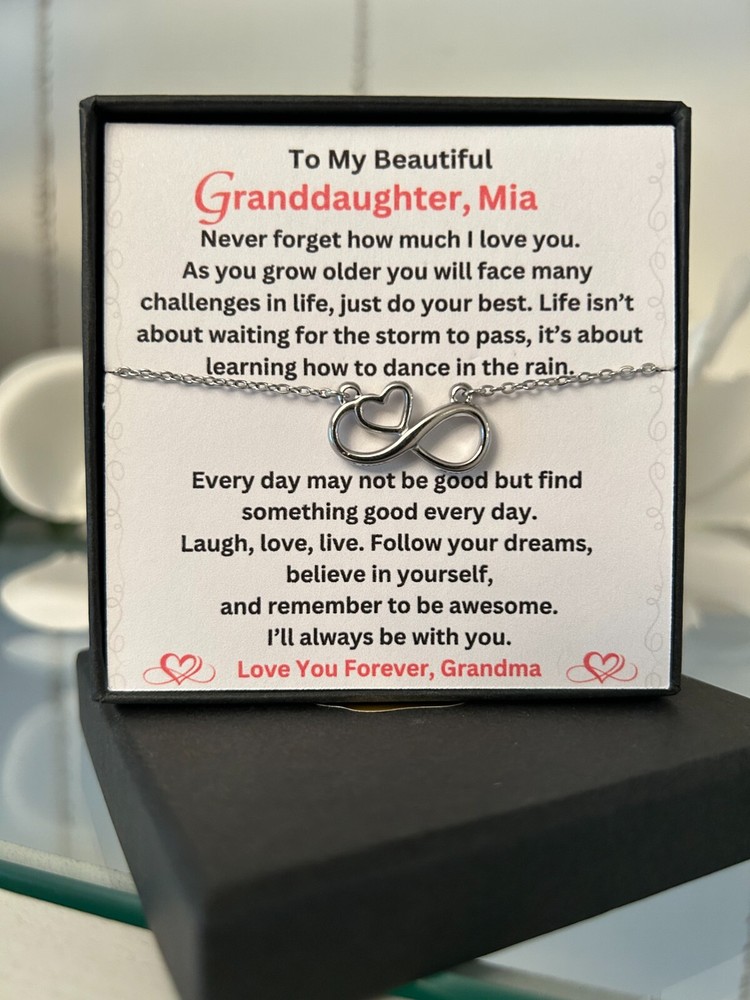 Personalize with recipients name and givers name. ***PLEASE NOTE YOU MUST LEAVE NAMES NEEDED FOR PERSONALIZATION: "TO" AND "FROM"FOR GIFT TO BE SENT OUT WITHIN 1 DAY TURNAROUND. IF THIS INFORMATION IS NOT GIVEN THERE WILL BE A DELAY IN YOUR SHIPMENT. WE WANT TO PROVIDE THE BEST CUSOMER SERVICE FOR YOU AND UNDERSTAND HOW IMPORTANT THIS GIFT IS BUT WE MUST HAVE THE INFORMATION NEEDED. THANK YOU! Celebrate the precious bond between a grandmother and her beloved granddaughter with our exquisite silver stainless steel 18-inch cable necklace chain with a heart pendant. This sentimental gift is a symbol of love and affection, perfect for any occasion and is gift box ready. Crafted with meticulous attention to detail, the sleek silver stainless steel chain radiates elegance, while the delicate heart pendant adds a touch of charm and tenderness. As your granddaughter wears this timeless piece, it will serve as a heartfelt reminder of the unconditional love and cherished memories shared between generations. Embrace the joy of gifting with this sentimental necklace, a token of love that will be treasured for a lifetime. Perfect for Christmas, Birthday, Wedding Day, Graduation or just because... gifts to granddaughter from grandmother Unique special gifts from grandma to granddaughter graduation gifts for granddaughter graduation gift ideas for granddaughter confirmation gifts for granddaughter wedding gift for granddaughter granddaughter keepsakes granddaughter graduation gift ideas best graduation gift for granddaughter keepsake granddaughter to my beautiful granddaughter necklace