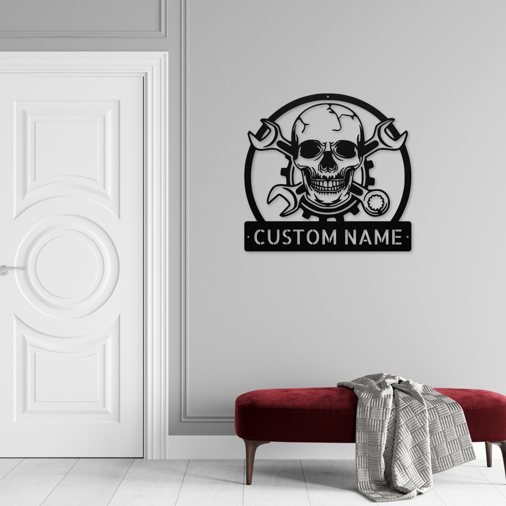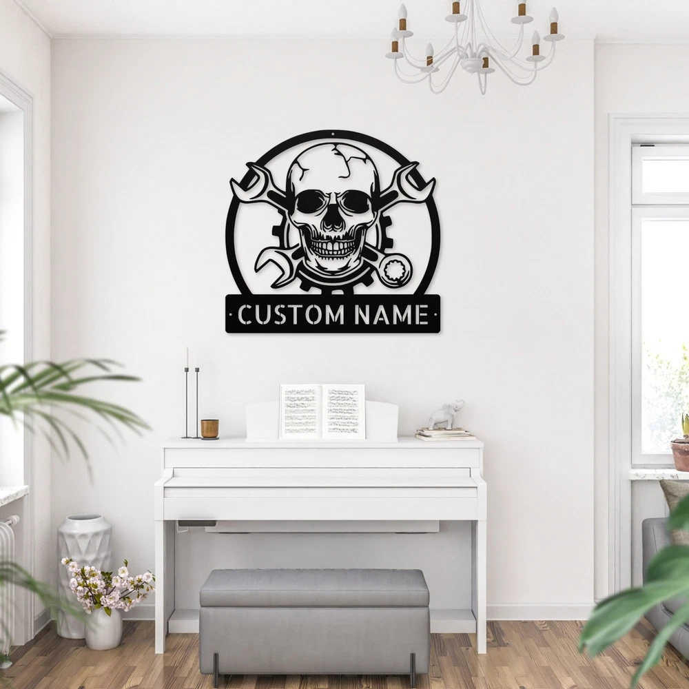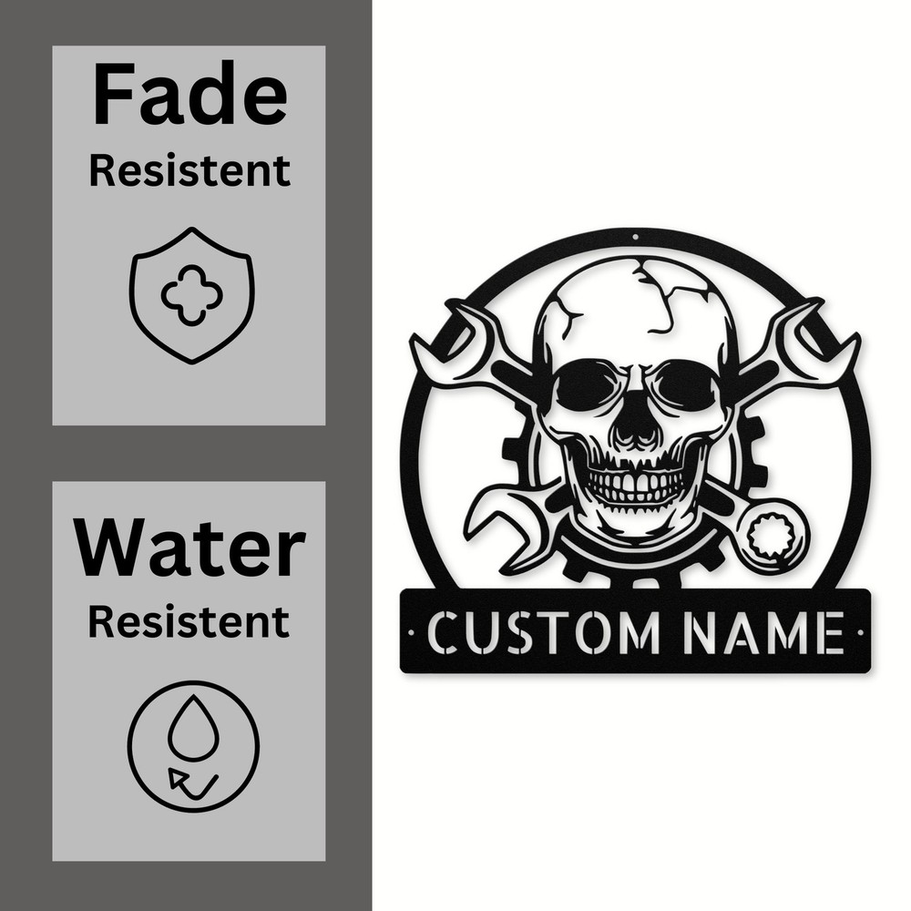 Product Description Add a unique touch to your space with our Personalized Skull Mechanic Metal Sign . Made from 16 gauge high-quality metal , this sign is not only striking but also built to last. With a powder coating , it is dust, weather, and water-resistant , making it perfect for indoor or outdoor use. This sign makes a great gift for Christmas, birthdays, or any special occasion. Itโs perfect for anyone who loves mechanics, skull designs, or simply wants to add a bit of personality to their home or office. Key Features: Durable Material: Crafted from 16 gauge high-quality metal for long-lasting use. Weather Resistant: The powder coating ensures it withstands dust and rain. Customizable: Personalize it to make it truly unique for yourself or as a gift. Versatile Decor: Ideal for your garage, man cave, office, or anywhere you want to stand out. Whether youโre treating yourself or surprising a loved one, our Personalized Skull Mechanic Metal Sign is sure to impress. Get yours today and bring a bold statement to your decor! Service and Color Choice My metal signs are designed to be personalized just for you, making them the perfect addition to any space! The default color is Black , but I also offer a variety of beautiful options including Copper, Gold, White, and Silver . After placing your order, simply contact me with your preferred color choice, and I'll ensure your sign is exactly how you envision it. Letโs create something special together! ๐ How Metal Signs Are Measured Metal signs are measured from the widest point to the opposite widest point of the design. The listed size (8โ, 10โ, 12โ, 18โ, 24โ, 30โ, 36โ, etc.) always refers to the longest edge of the artwork, not the height only and not the width only. Because every design has its own shape and proportions, the other dimension (height or width) will adjust automatically . ๐ Example (30-Inch Size) When selecting a 30-inch sign , the longest side of the design will measure 30 inches . If the design is wider than it is tall: Width = 30 inches Height adjusts proportionally (often around 18โ22 inches depending on the design) If the design is taller than it is wide: Height = 30 inches Width adjusts proportionally This ensures the sign keeps its correct proportions and the original shape, no matter which size is selected. ๐จ Custom Designs & Logos Welcome Have a special idea in mind? I can make it happen! Whether you need a business logo , family emblem , pet silhouette , or a one-of-a-kind design , I can create it from scratch and turn it into a high-quality metal sign. You can send your concept, sketch, or photo, and Iโll handle the custom design, editing, and production from start to finish. Your vision becomes real metal artwork made exactly the way you want it. โจ Custom Any Design: If you have a special idea in mind, I can turn it into a metal sign, just message me! ๐ฆ Ordering & Gift-Ready Each sign is crafted to order with great care and attention to detail. Your piece arrives ready to hang , making it easy to display or give as a thoughtful gift. Whether it's for your home or for someone special, every sign is made to impress and last for years. ๐ Your support means the world to me and my family. Thank you for helping keep this small art business growing. ๐ Production & Shipping Every sign is made to order with a fast turnaround time. Production Time: 1โ2 business days Free Shipping: UPS Ground (estimated 2โ5 business days ) Expedited Shipping: FedEx 2-Day Delivery available at checkout Shipping Location: All orders ship from Indiana, USA Each order is packed securely to ensure your metal sign arrives safely and ready to display.
