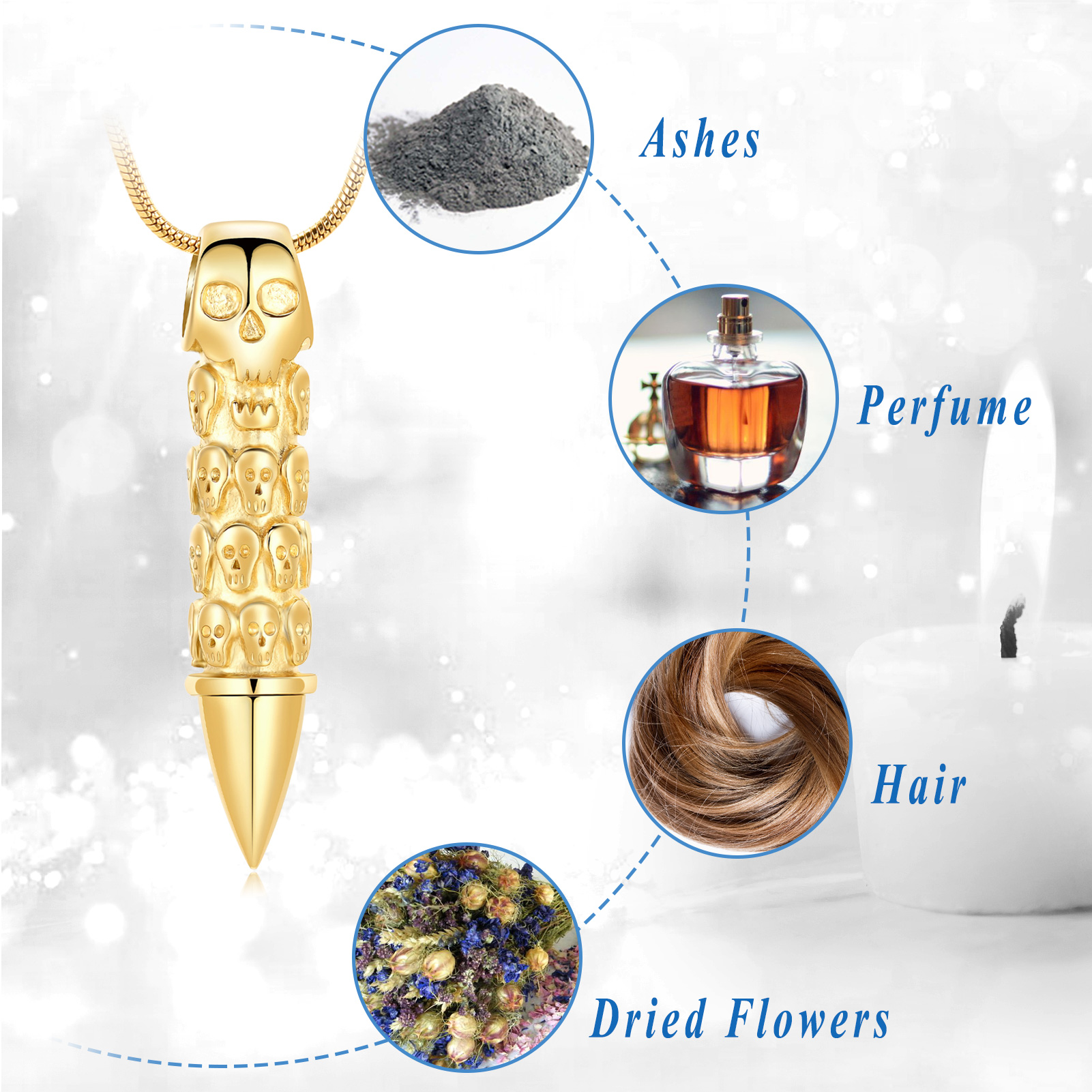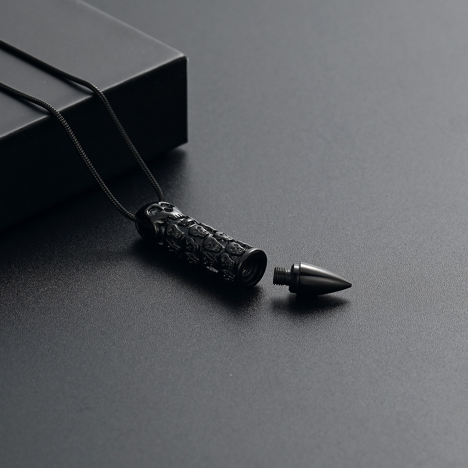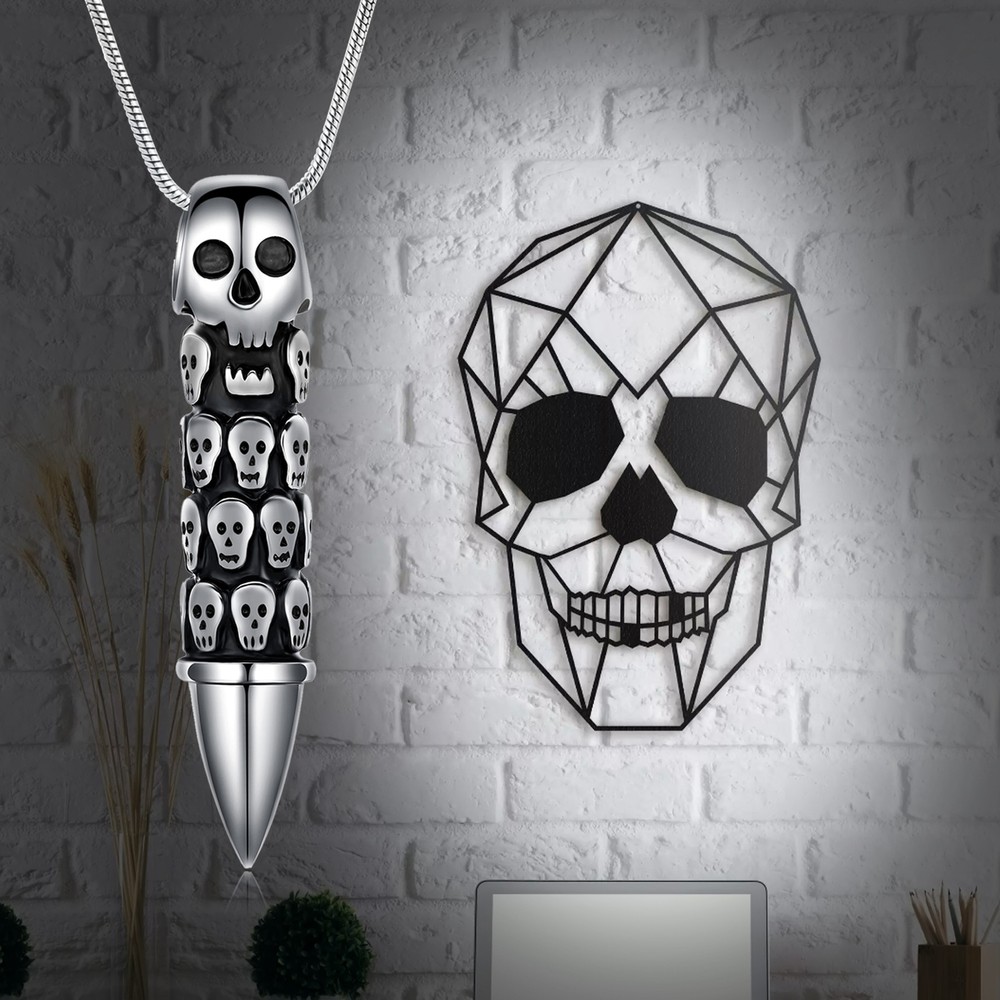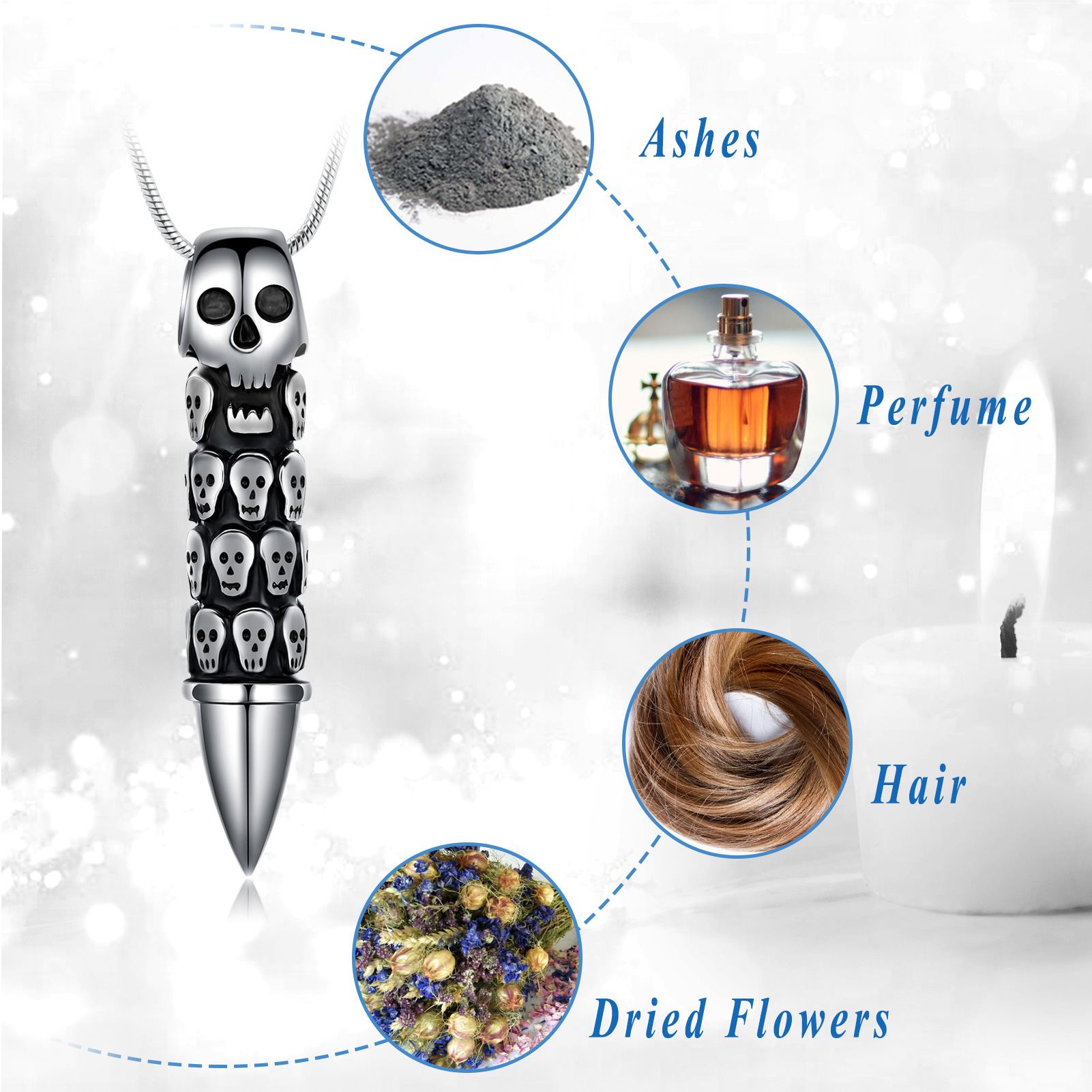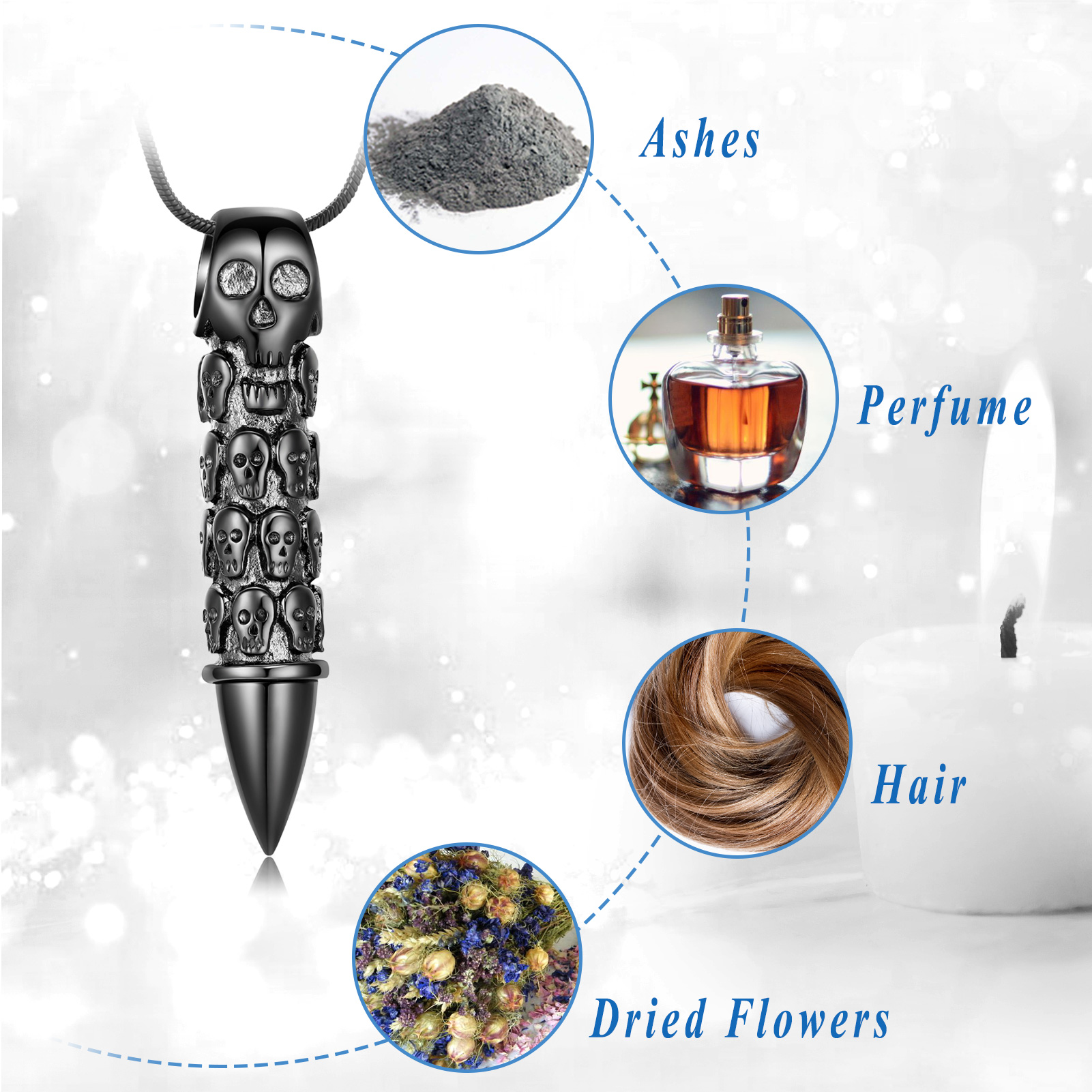 Stainless Steel Skull Cremation Urn Necklace for Ashes Keepsake