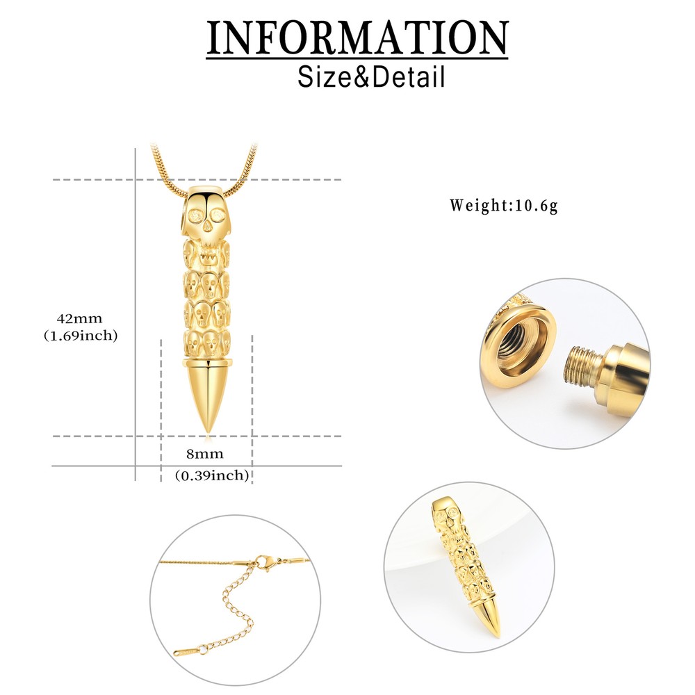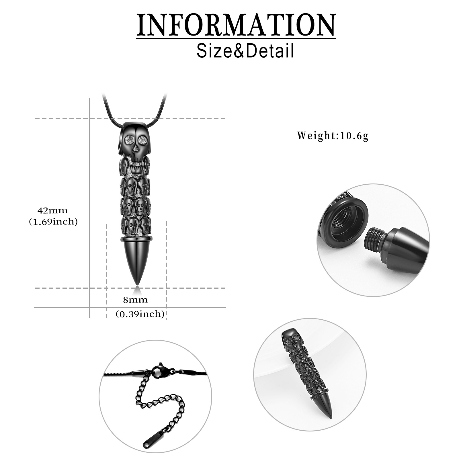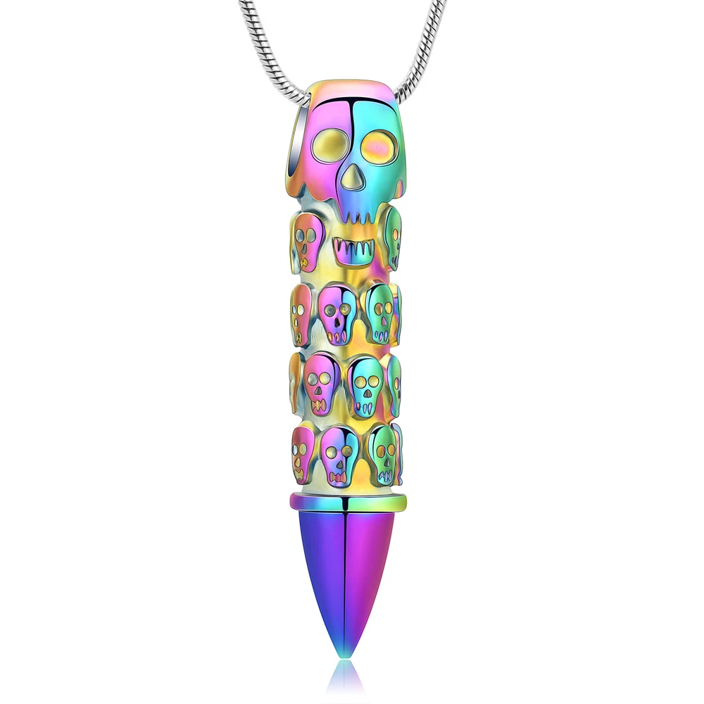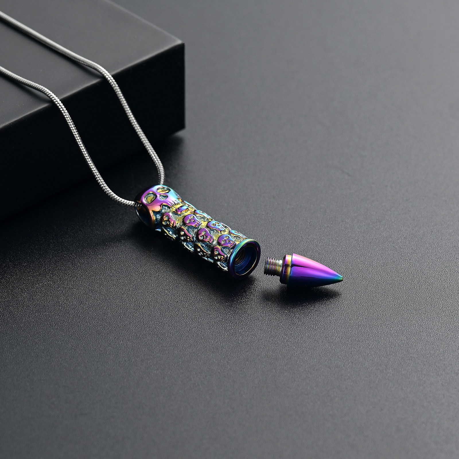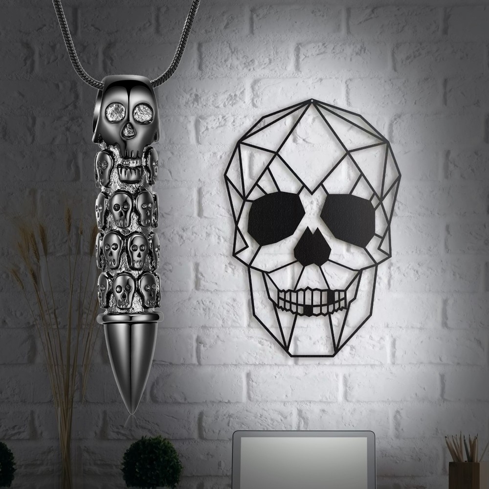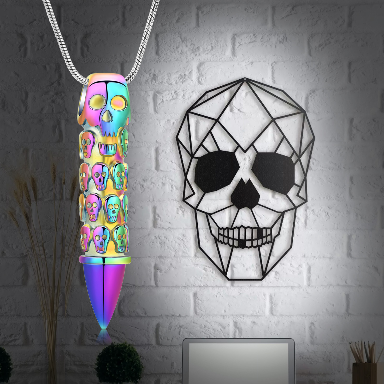 Stainless Steel Skull Cremation Urn Necklace for Ashes Keepsake