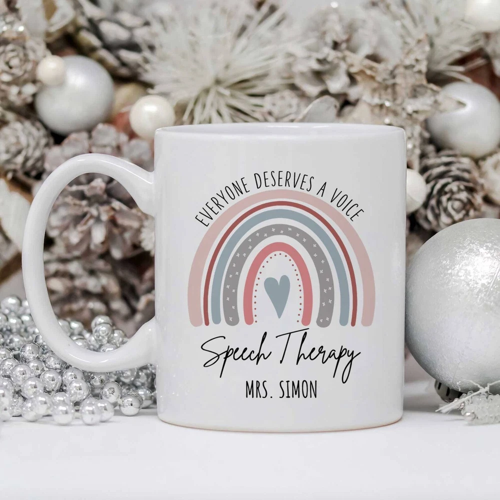 Personalized Speech Therapist Coffee Mug Everyone Deserves A Voice Speech Gift Slp Mug Speech Therapist Rainbow Mug Slp Student Gift Product Details.. This high quality 11oz. ceramic white mug has a premium hard coat that provides crisp and vibrant color reproduction sure to last for years. Perfect for all hot & cold beverages. The highest quality printing possible is used. It will never fade no matter how many times you wash it. Material: 100% Ceramic. Print both sides. Dishwasher and Microwave Safe. High Gloss + Premium White Finish. Printed in the U.S.A. Personalized & Custom. We support personalized and custom mug to add custom, when placing an order, you can add notes to the "order note" in shipping address section. Also you can contact us directly via message. Shipping Info. Ready to ship in 1 to 2 business days, All products are made-to-order and proudly printed in the United States. Shipped by USPS and DHL, You will receive your order in 5-7 days. Replace & Refund. All products are defective during shipping broken, chipped will be replaced free of charge. You are not satisfied with the product, we will refund 100% money to you. If any other issues arise, please do not hesitate to message, we would be more than happy to assist you.