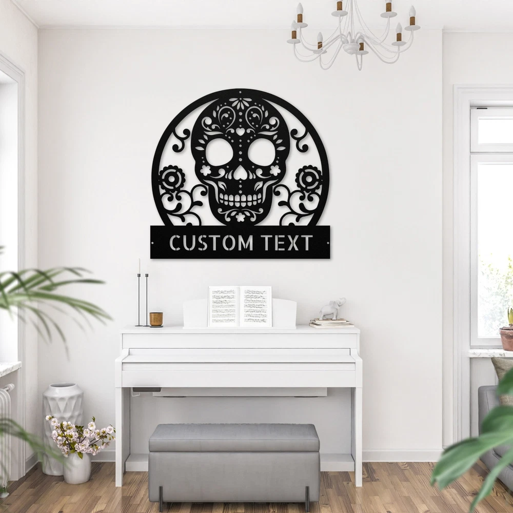 Product Description Personalized Sugar Skull Metal Sign Custom Decor Unique Gift for Home Office Add a touch of vibrant style to your space with our Personalized Sugar Skull Metal Sign ! This striking sign is perfect for those who appreciate unique art and want to showcase their personality. Crafted from 16 gauge high-quality metal , this sign is both sturdy and stylish. The powder coating ensures it’s dust, weather, and water-resistant , making it ideal for indoor or outdoor display. Here are some highlights: Customizable Design: Personalize your sign with a name, date, or message for a special touch. Durable Material: Made to withstand the elements while maintaining its colorful appearance. Great Gift Idea: Perfect for Christmas, birthdays, or any occasion that calls for a unique gift. Versatile Use: Suitable for home, garden, or office decoration, adding flair wherever it’s placed. Elevate your decor with the Personalized Sugar Skull Metal Sign and celebrate your individuality today! Service and Color Choice Our metal signs are designed to be personalized just for you, making them the perfect addition to any space! The default color for our signs is Black , but we also offer a variety of beautiful options including Copper, Gold, White, and Silver . After placing your order, simply contact us with your preferred color choice, and we'll ensure your sign is exactly how you envision it. Let’s create something special together!