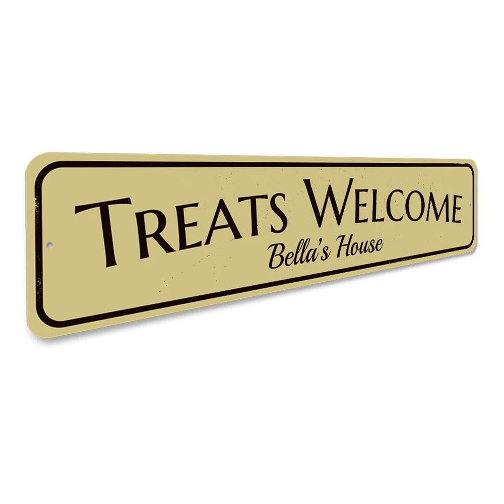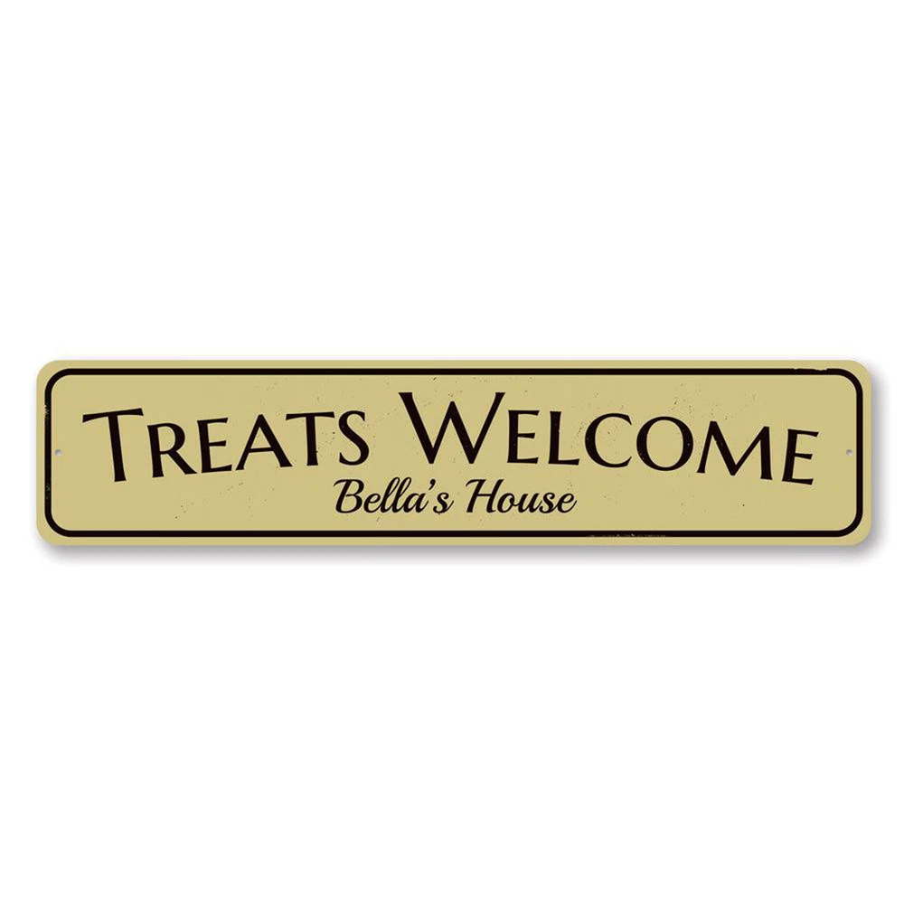 The Lizton Sign Shop Product Description Personalized Treats Welcome Pet Name House Animal Lover Metal Decor Sign **there may be slight variations in color and text spacing, however your sign will be very similar to the image above. Quality Aluminum Street Signs Sign Information Aluminum Brand New Sign Comes with rounded corners and pre-drilled for easy hanging. We use the highest quality materials - 100% USA-made! Great Gift Idea - Our signs truly make a one of a kind gift. Personalize the sign with the text you want to add. Custom text for the sign can be sent to us via email. A BRAND NEW SIGN!! All of our street signs are made of premium materials. The sign itself is made of aluminum and will never rust providing years of enjoyment indoors and outdoors. No Cheap plastic!! The Lizton Sign Shop specializes in quality personalized custom aluminum signs for any occasion. These make the perfect sign for any man cave, office, basement, garage, college dorm, kids bedroom, game room, bar, pub, tavern or countless other places. *Colors may vary slightly from one computer screen to the next but the image should be very close. All content and designs are subject to copyright and may not be reproduced in any form. Payment Methods We would prefer payment to be made through paypal but we also accept all major credit cards. If you select the credit card option please contact us after you make your purchase and we can walk you through the steps to make a secure payment. Return Policies We will accept returns within 30 days of the purchase date. The buyer is responsible for any costs to return the item or items. Returns will only be accepted for items that were damaged in shipping or if we made an error in the manufacturing of your item, i.e. spelling error.