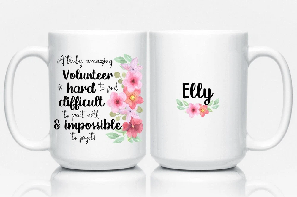 Personalized Volunteer Gift For Women Volunteer Mug Appreciation Gift Thank You Product Details.. This high quality 11oz. ceramic white mug has a premium hard coat that provides crisp and vibrant color reproduction sure to last for years. Perfect for all hot & cold beverages. The highest quality printing possible is used. It will never fade no matter how many times you wash it. Material: 100% Ceramic. Print both sides. Dishwasher and Microwave Safe. High Gloss + Premium White Finish. Printed in the U.S.A. Personalized & Custom. We support personalized and custom mug to add custom, when placing an order, you can add notes to the "order note" in shipping address section. Also you can contact us directly via message. Shipping Info. Ready to ship in 1 to 2 business days, All products are made-to-order and proudly printed in the United States. Shipped by USPS and DHL, You will receive your order in 5-7 days. Replace & Refund. All products are defective during shipping broken, chipped will be replaced free of charge. You are not satisfied with the product, we will refund 100% money to you. If any other issues arise, please do not hesitate to message, we would be more than happy to assist you.