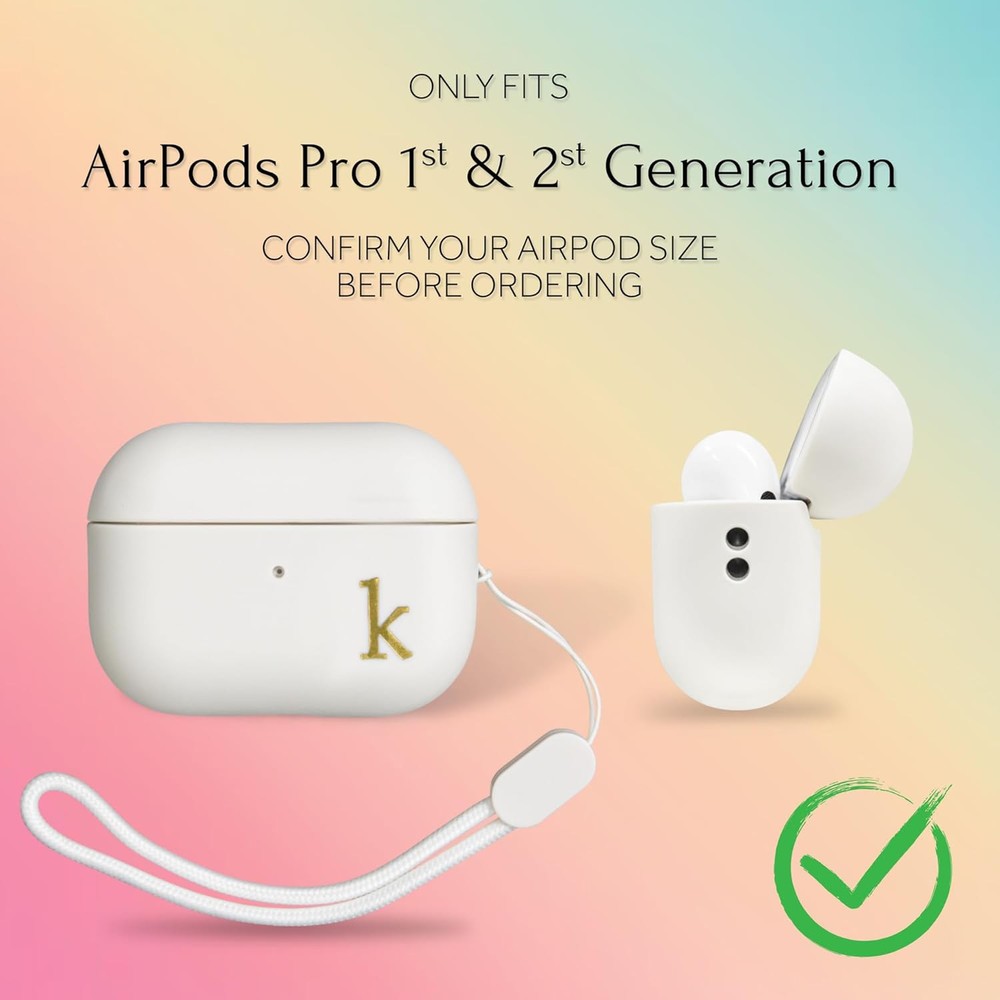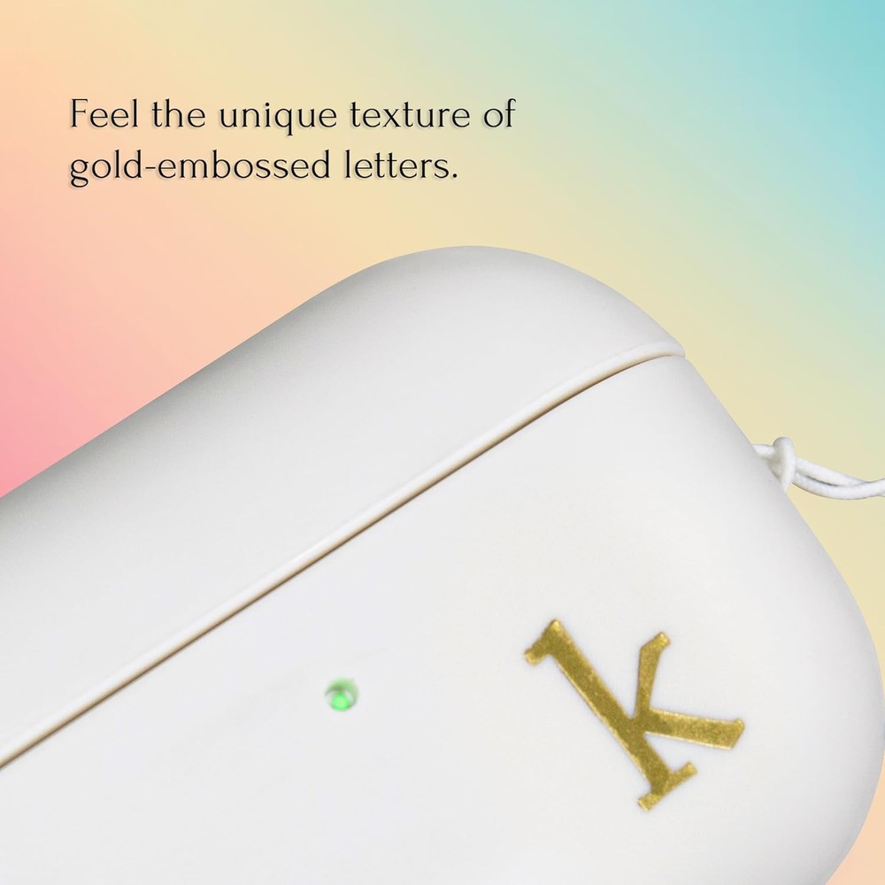 COLLECTIVE HOME - AirPods Pro 1st & 2nd Gen Case, Personalized Letter white Product Details Package Dimensions: 2.64 x 1.97 x 1.18 inches Item Weight: 1.13 ounces Special features: Lightweight Form Factor: Case Color: white Whats in the box: case Manufacturer: COLLECTIVE HOME Country of Origin: China Brand: COLLECTIVE HOME Compatible Devices: Headphones Shell Type: Soft 【Durable TPU Material】 Made from soft yet sturdy TPU, this case offers excellent protection for your AirPods Pro against drops and scratches, while providing a comfortable, smooth feel. 【Compatible with AirPods Pro 1st & 2nd Gen】Designed to fit both AirPods Pro 1st and 2nd generation, this case features a side lanyard hole. For the 2nd generation, a specific slot is provided to easily attach your own lanyard. 【Elegant Gold Letter Design】Featuring a luxurious gold letter design, this case allows you to personalize your AirPods Pro with a unique, sophisticated touch—perfect for those who appreciate elegance and style. 【Convenient Charging & LED Display】The case allows easy wireless charging without removing the AirPods Pro from the case. The front LED indicator lets you track the charging progress, ensuring convenience and ease of use. 【Buy It at Ease】If you have any questions, don’t worry, feel free to contact us, we will respond within 24 hours!