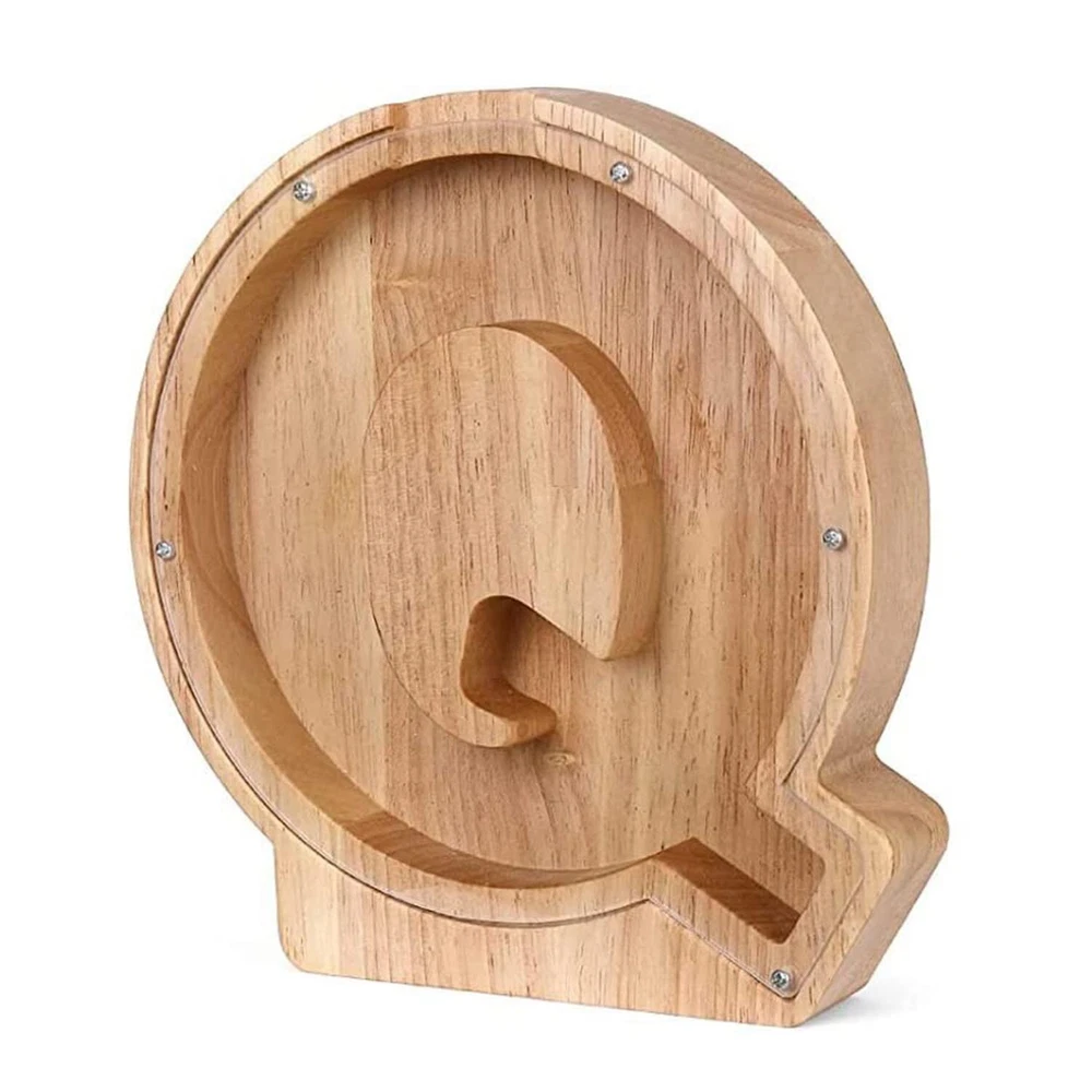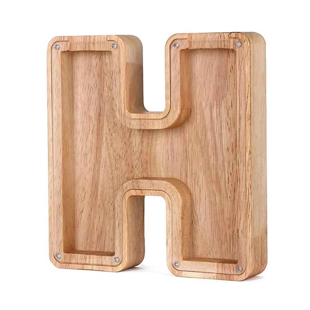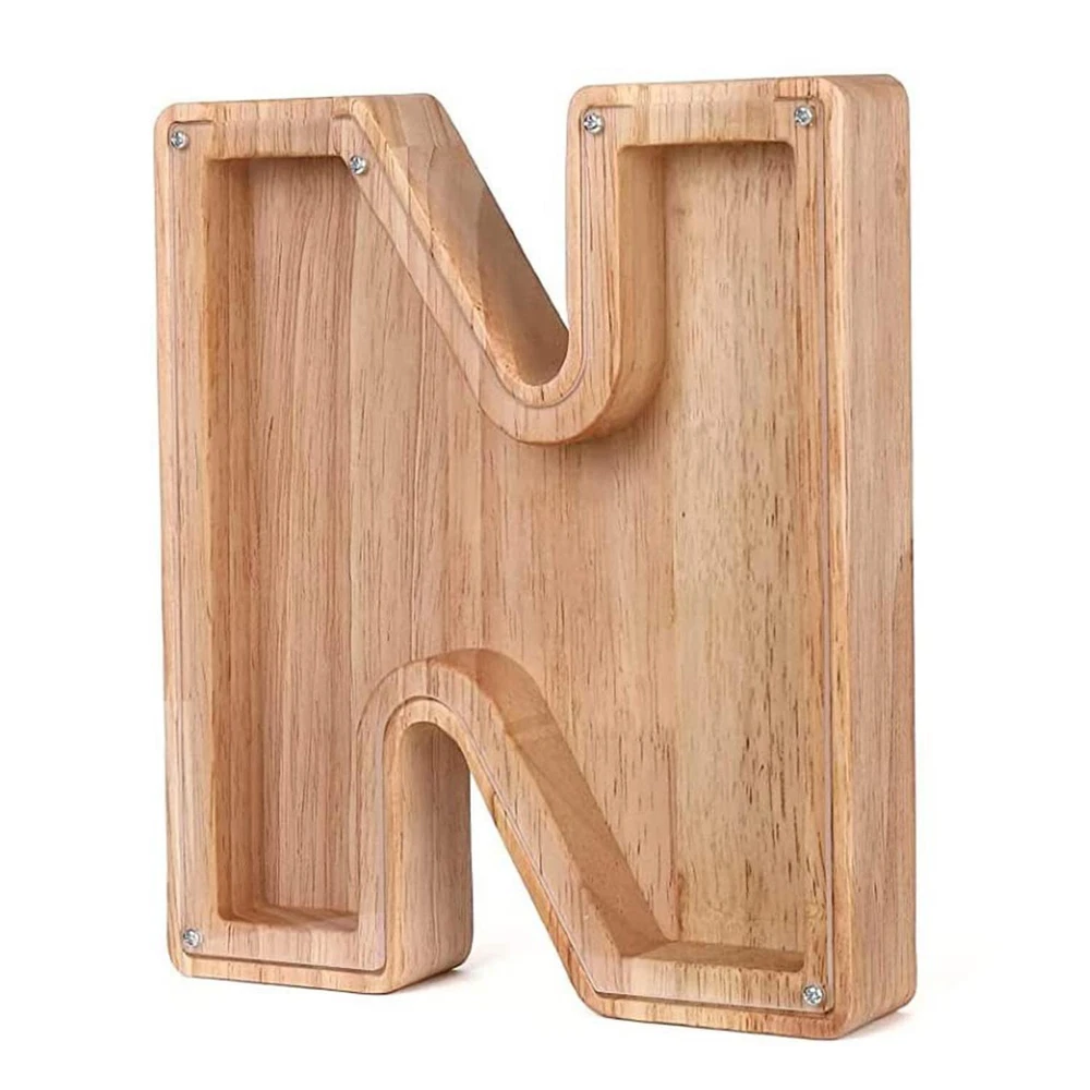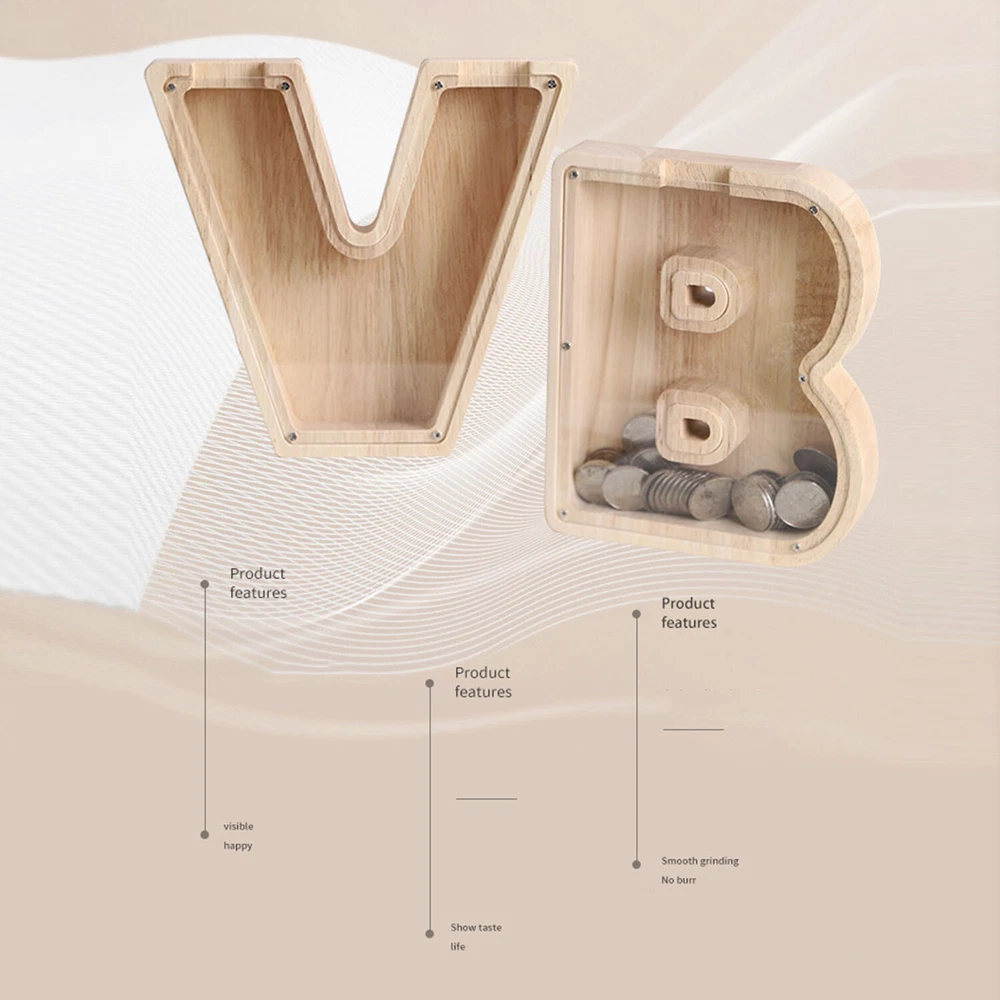 Personalized Wood Piggy Money bank Coin Box Alphabet Storage Tank Kid Gifts