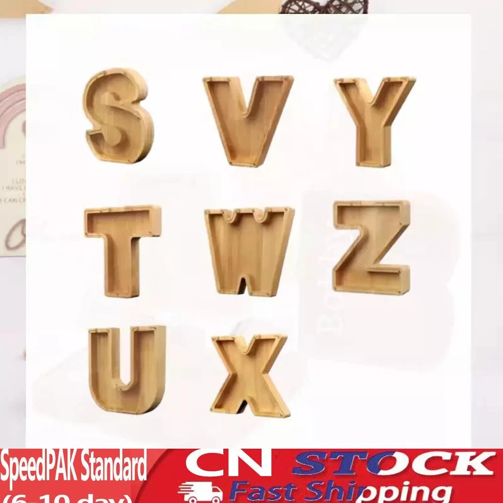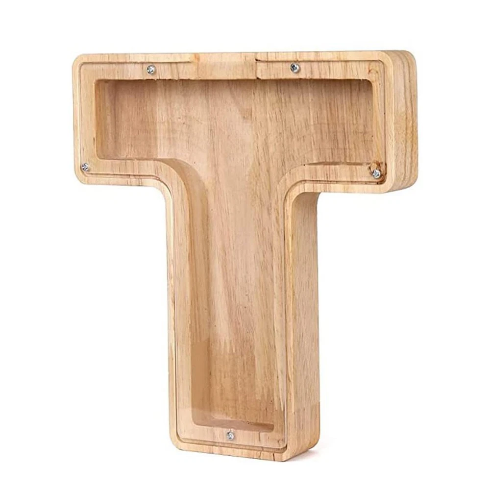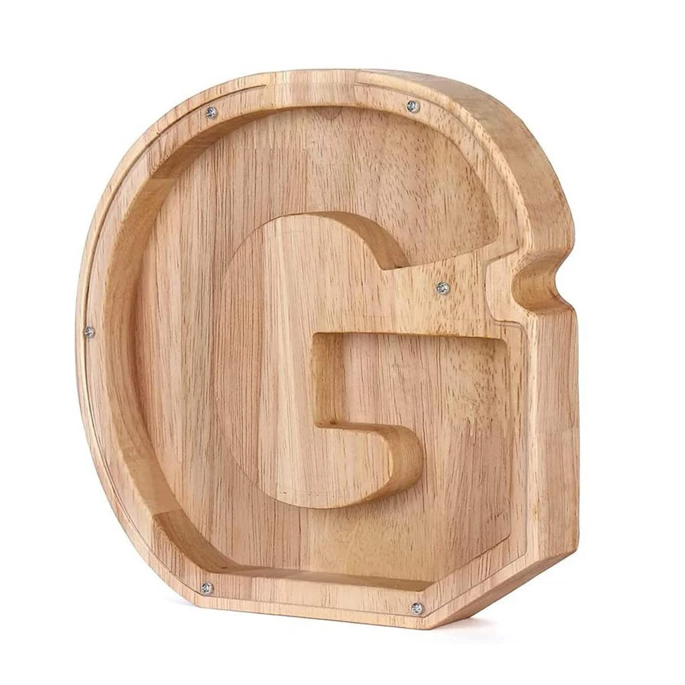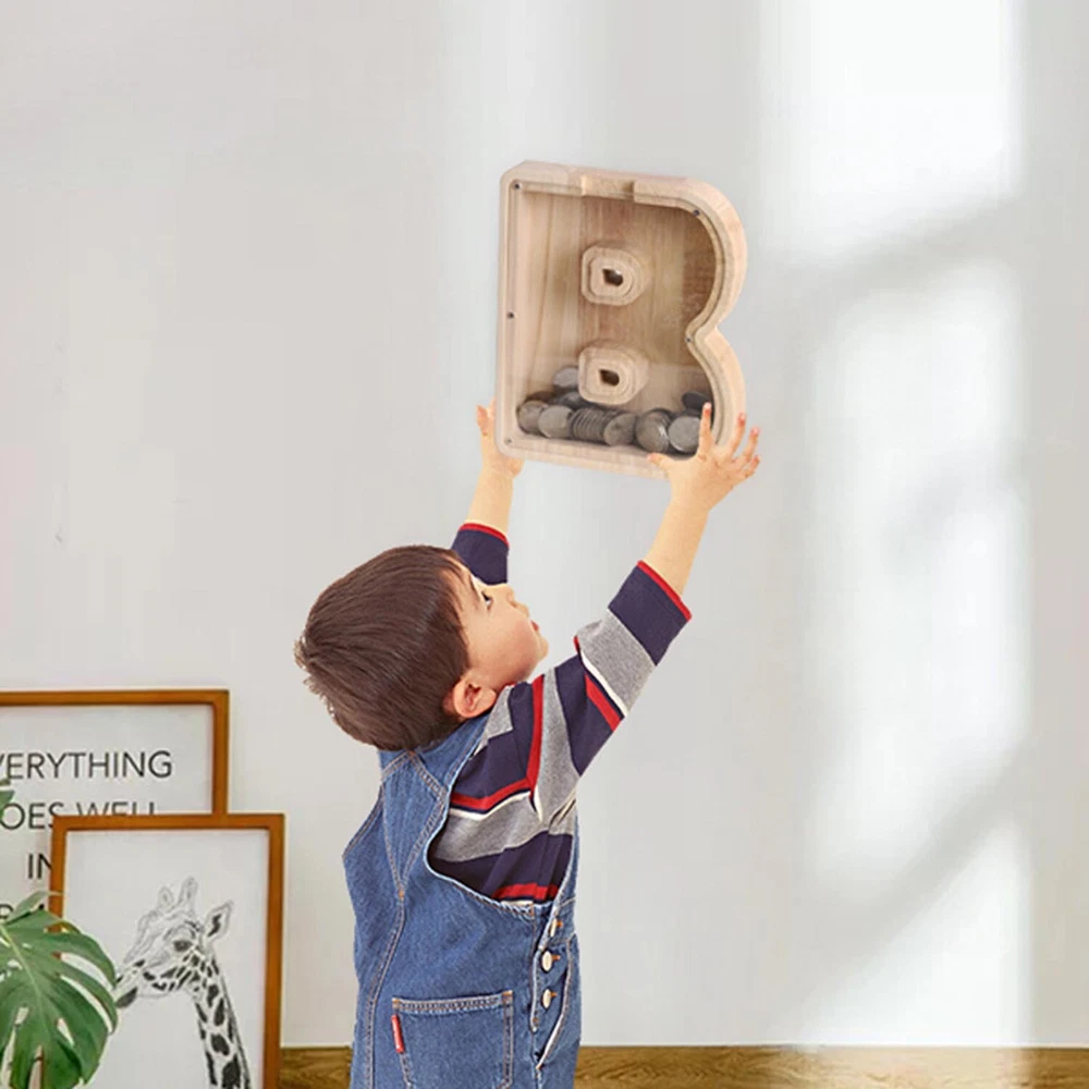 Personalized Wood Piggy Money bank Coin Box Alphabet Storage Tank Kid Gifts
